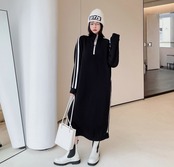 ・サイドにラインが入っているハーフジップのスウェットワンピ。