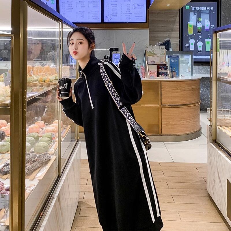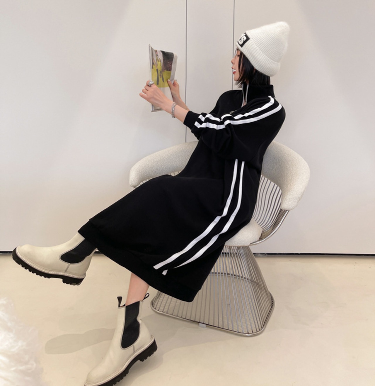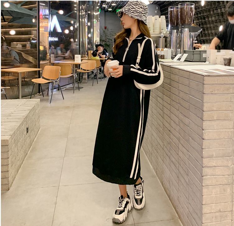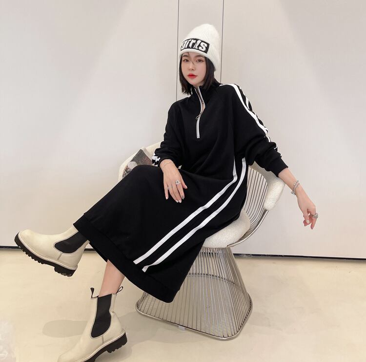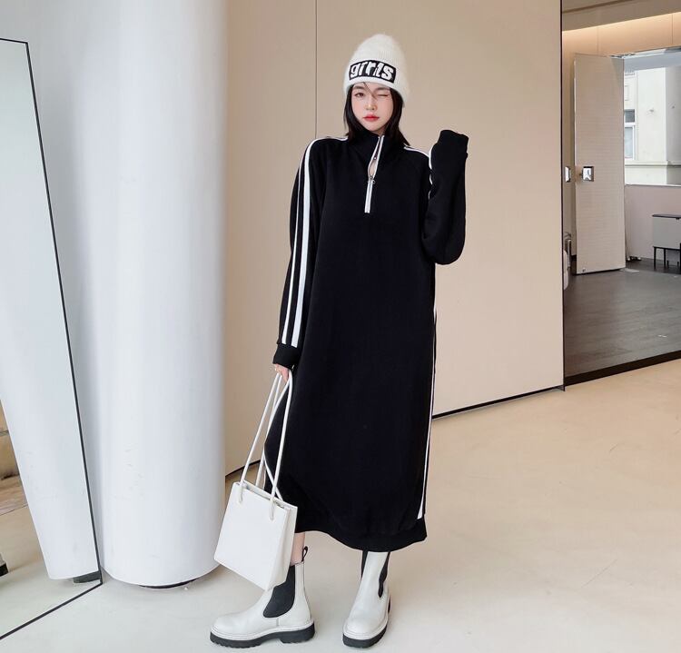 【海外からの取り寄せ】 2024新作 スウェットワンピース ハーフジップ ジャージ ワンピース トレーナーワンピ 黒 #[onepiece407_18800]【送料込み】【251029】