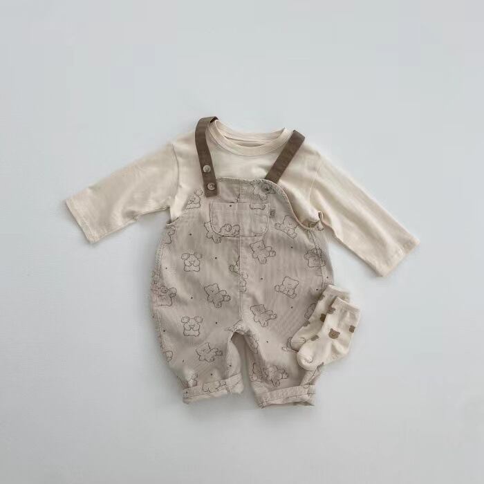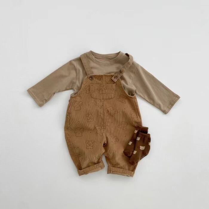 【海外からの取り寄せ】2022秋新作 ins 春秋 コーデュロイ サロペット 子供服 可愛い クマ柄 プリント 66-90cm 男女兼用 #[ckd1091122_18200]【送料込み】【250412】