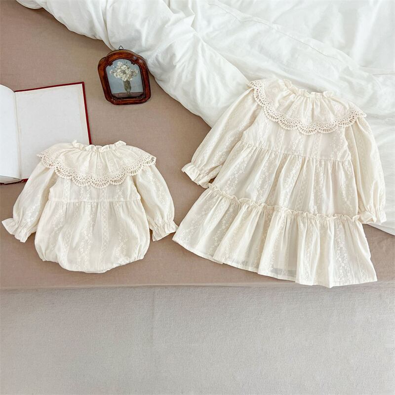 【海外からの取り寄せ】2024秋新作 子供服 姉妹お揃い 選べる2タイプ レース ラッフルカラー ロンパース ワンピース 長袖 #[ckd1094146_22200]【送料込み】【250515】
