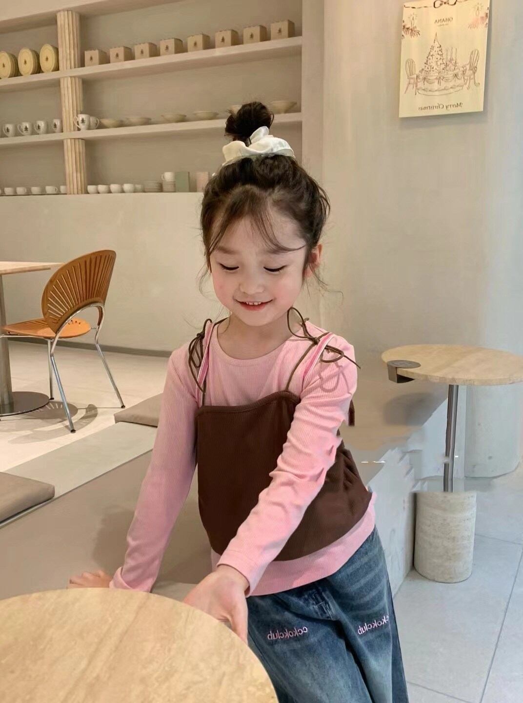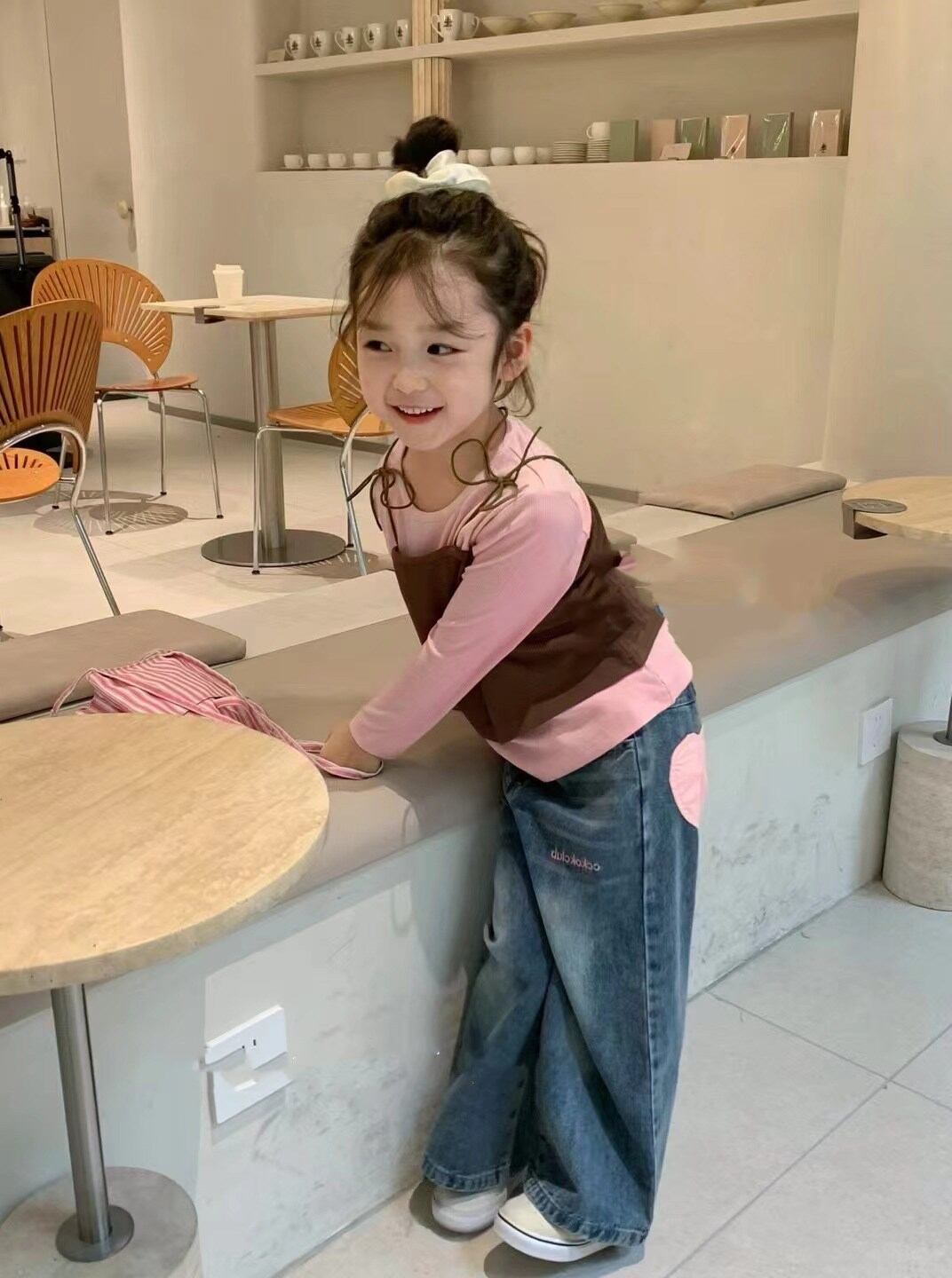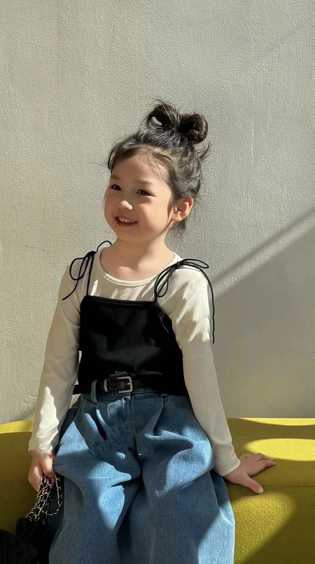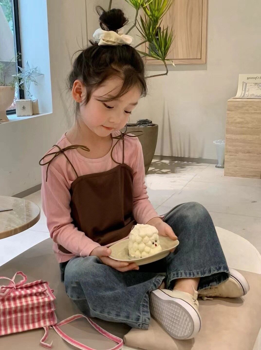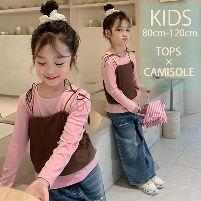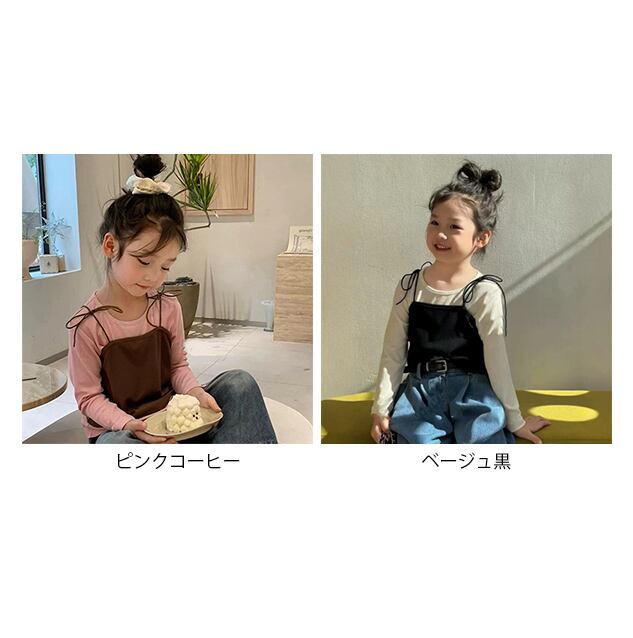 【海外からの取り寄せ】 2024新作 韓国子供服 子供 キッズ セット 長袖 キャミソール リボン 重ね着 レイヤード #[kids780_16800]【送料込み】【250326】