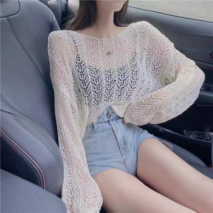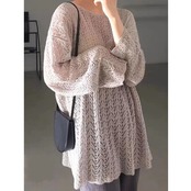 【海外からの取り寄せ】 2024新作 サマーニット セーター 透かし編み ニット 長袖 ハイネック カギ編み 透け感 抜け感 #[tops479_13800]【送料込み】【250712】