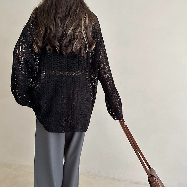 程よい透け感がやわらかな雰囲気の透かし編みニット