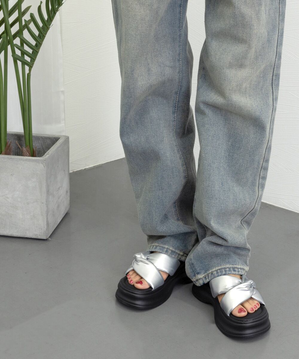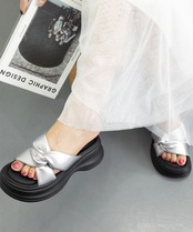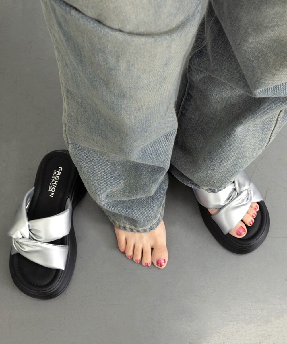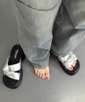 コーディネートのアクセントになるシルバーサンダルです