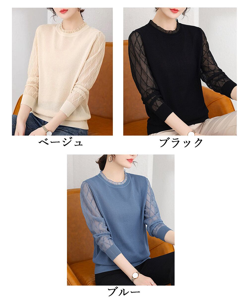 【日本倉庫からの発送】 シースルー袖ニット 異素材ニットトップス #[98JXMC-001_24100]【送料込み】【250515】