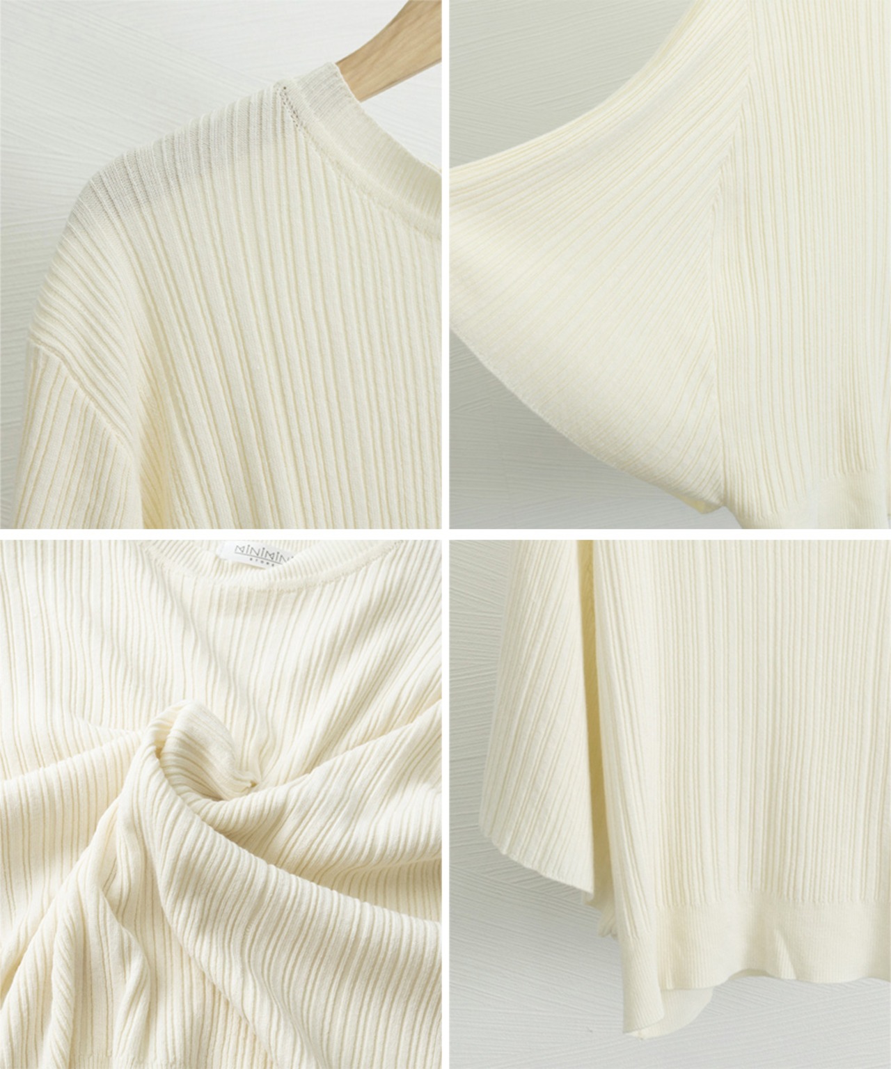 無地ニットソー薄手 リブニット 韓国風 プルオーバー春夏秋