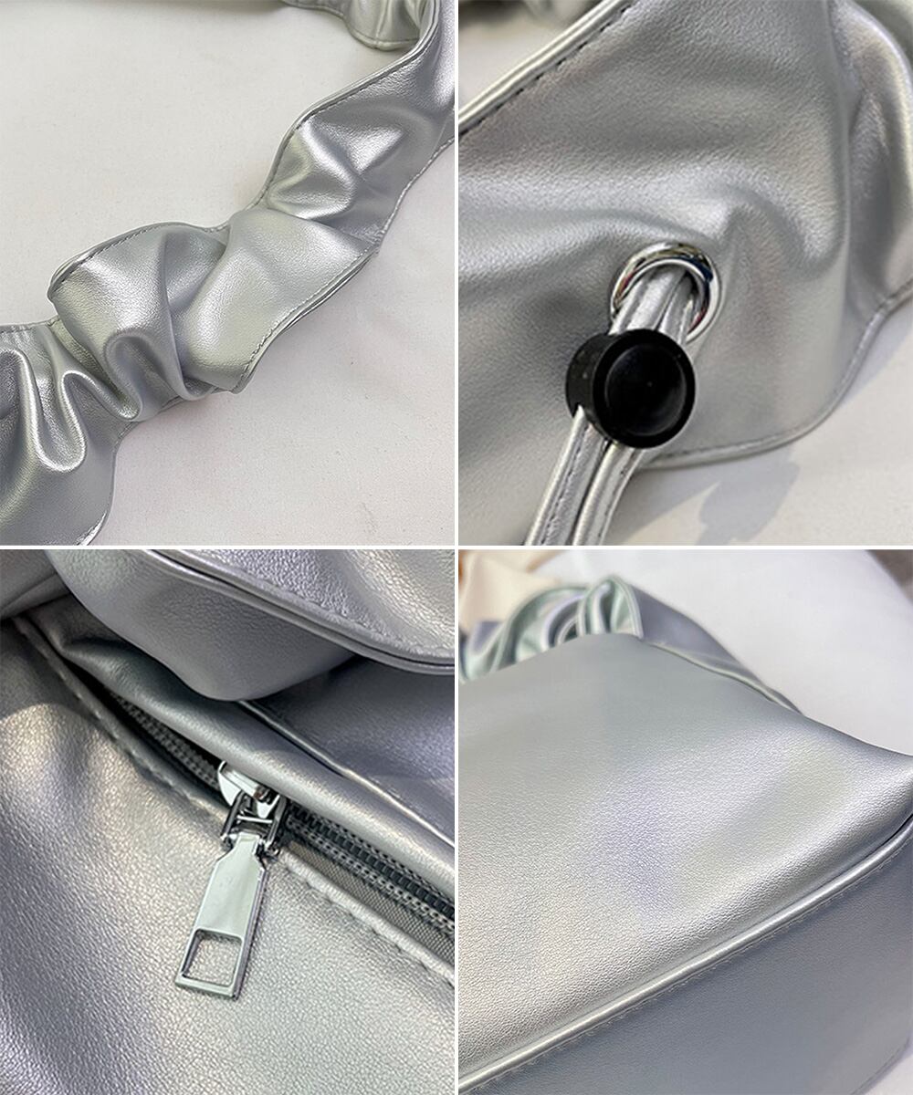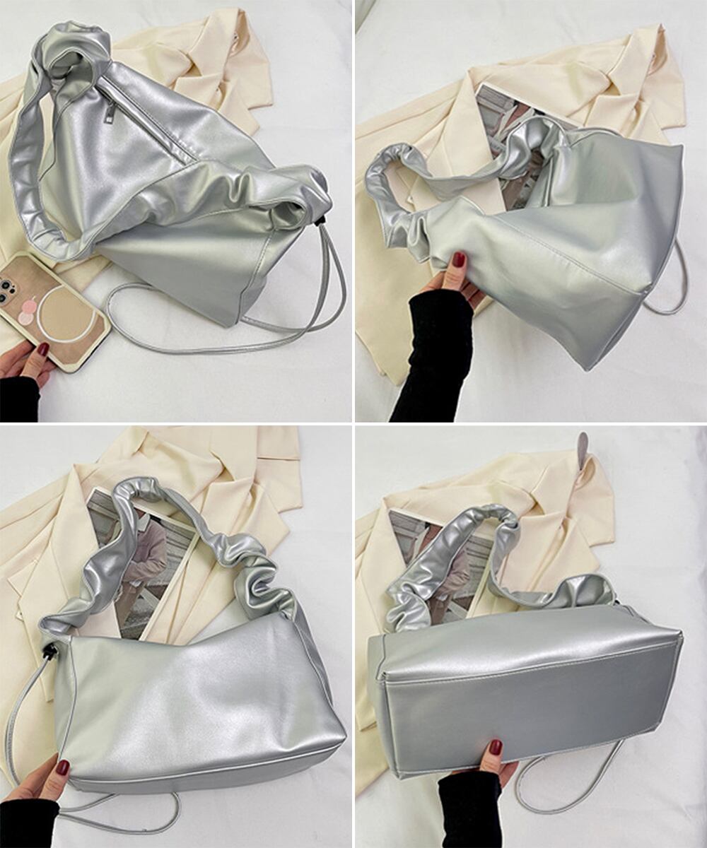 大容量肩掛けバッグ 無地斜め掛けバッグ シルバーバッグ人気