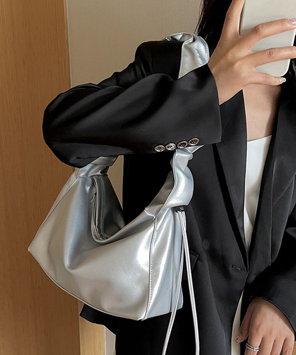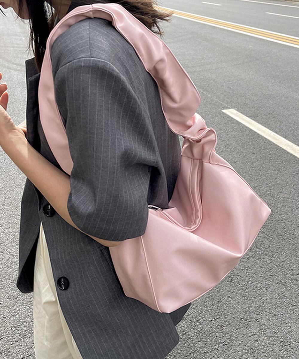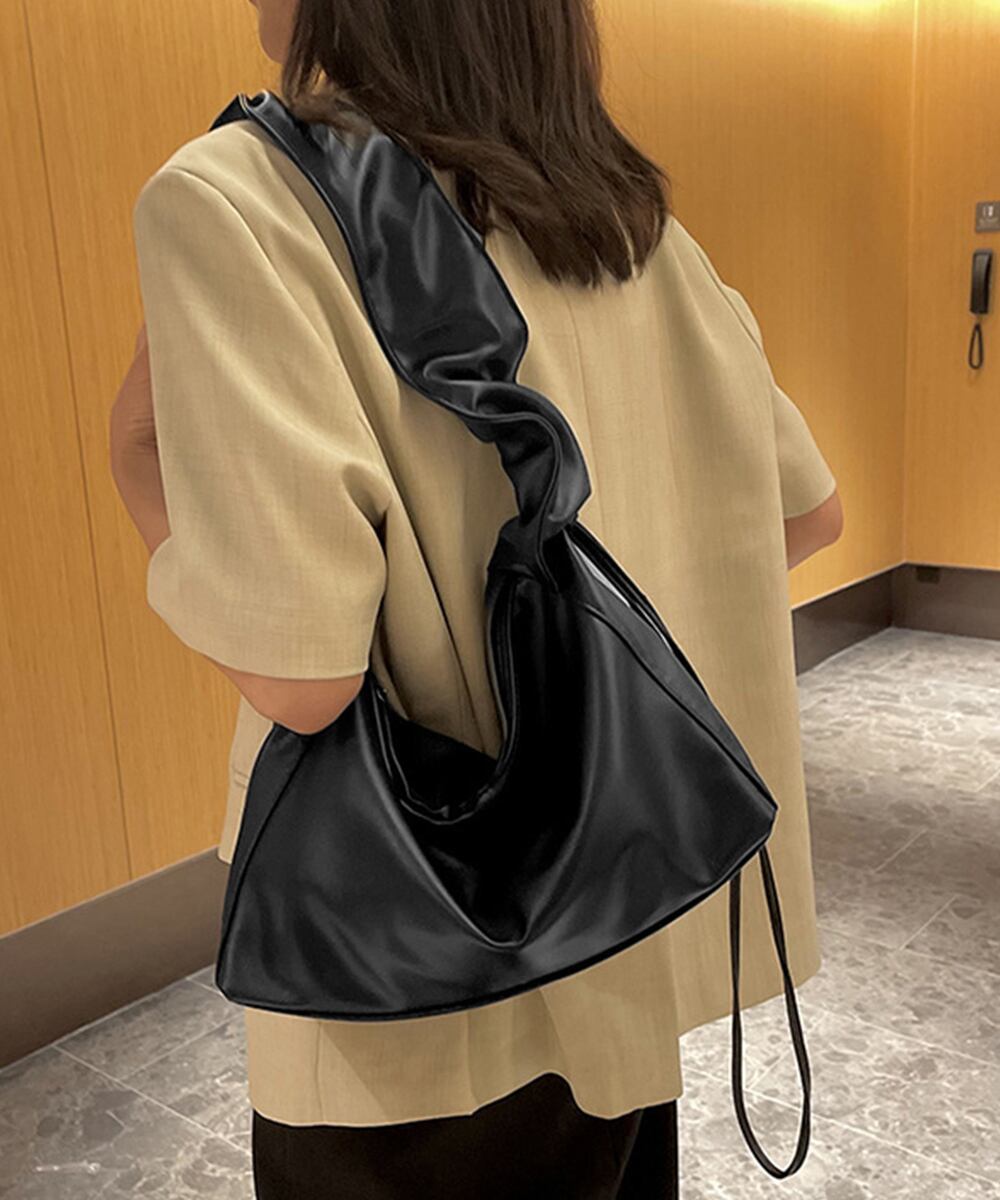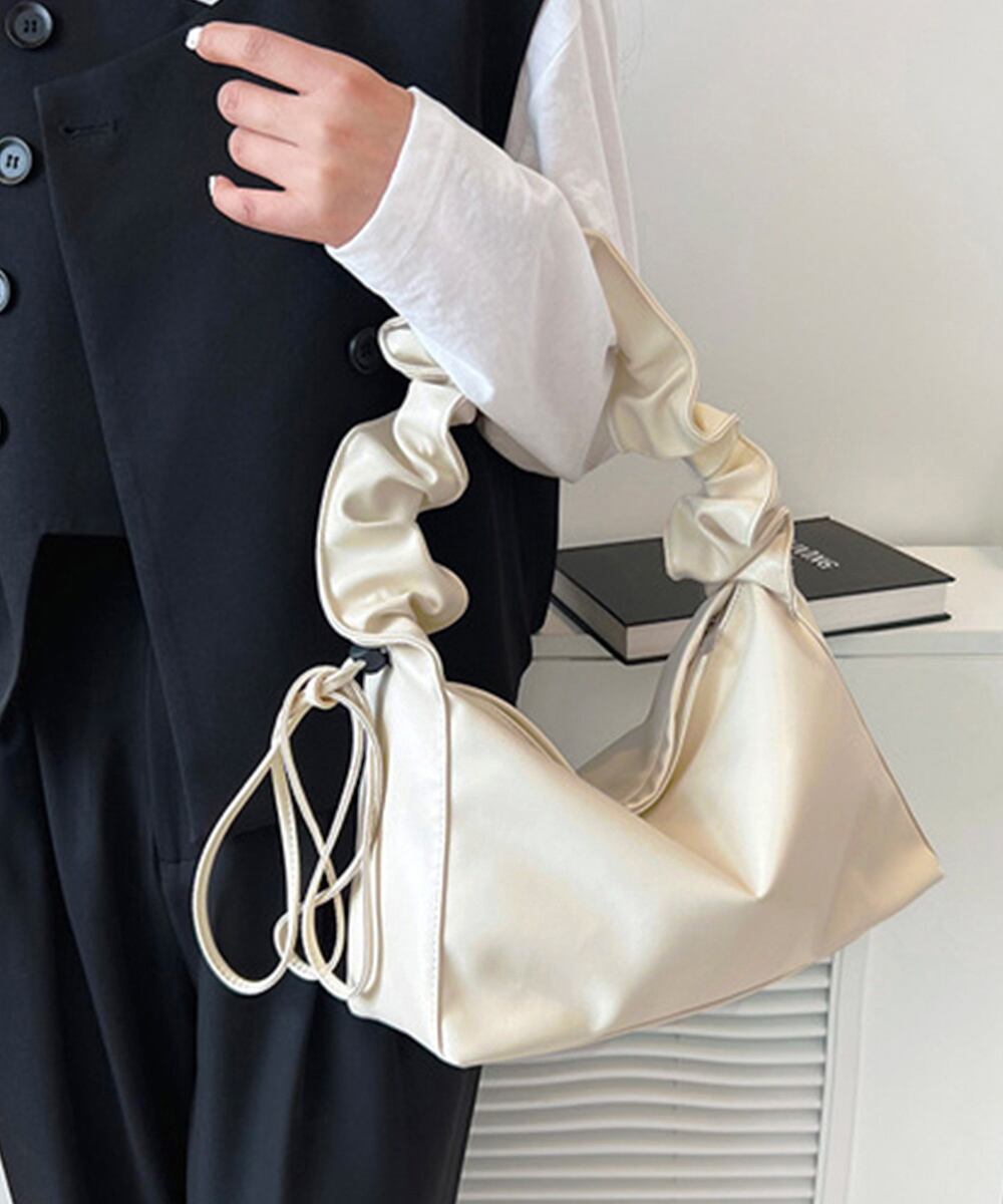ドロストフリルがスタイリングのポイントになるソフトPUレザーのバッグ