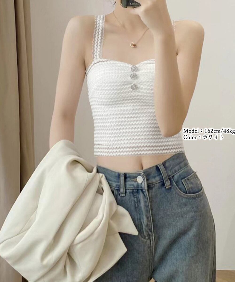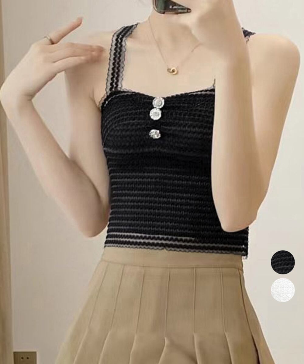 ノンワイヤー セクシー レースブラキャミ ヘソ出し 背中見せインナー 胸元ボタン シアーキャミソール ショート丈 着やせ