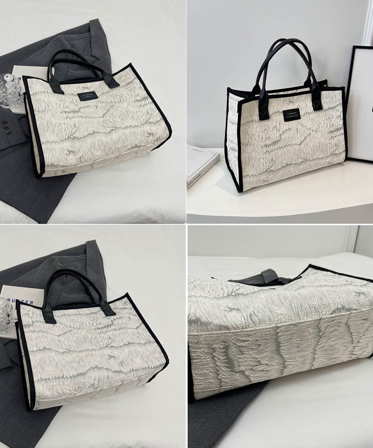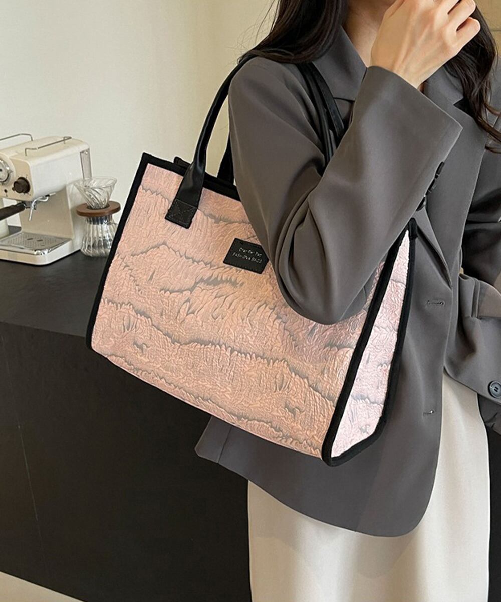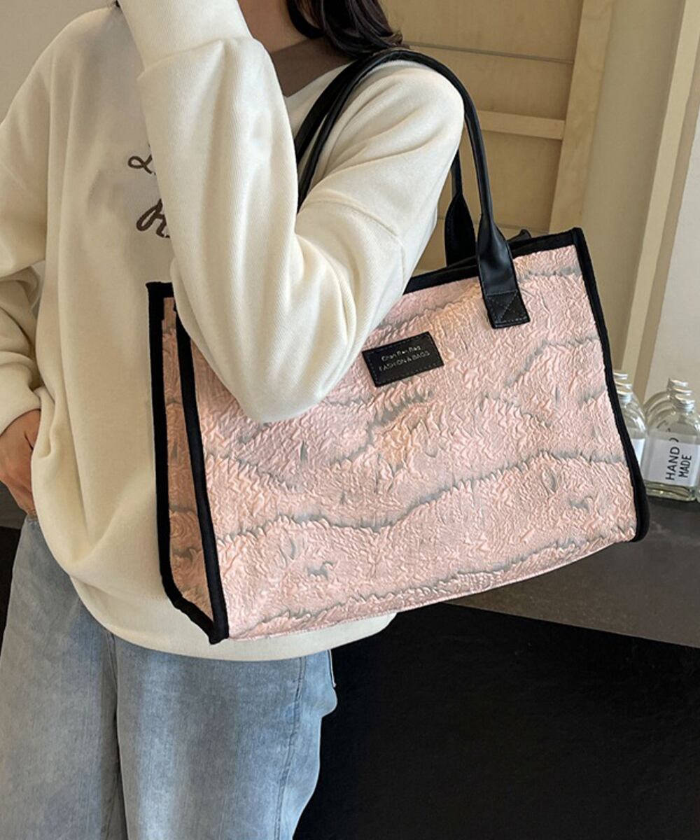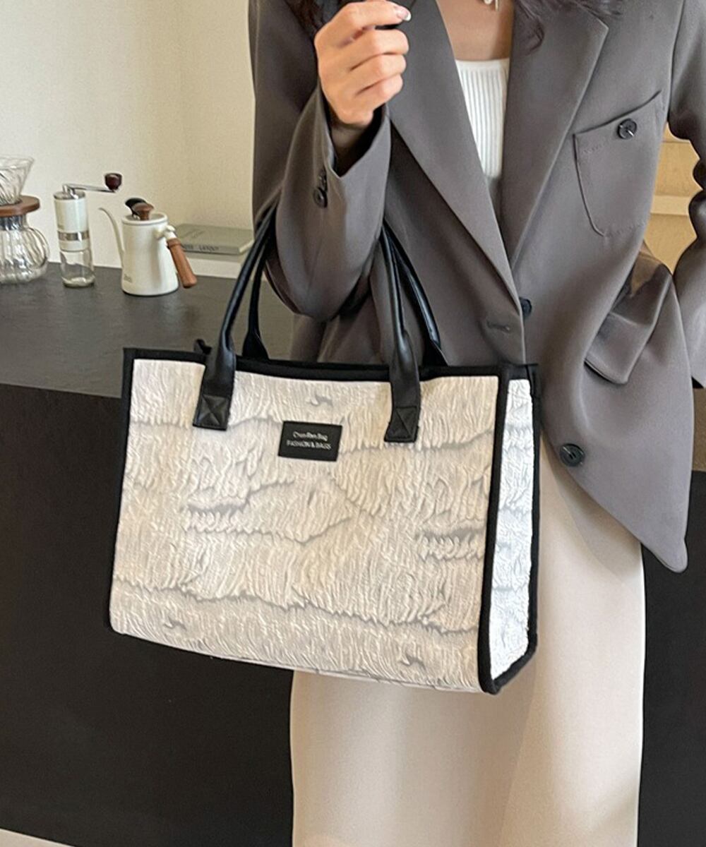 ジャガード スクエアトート おしゃれ A4大容量かばん 通勤通学 オフィスカジュアル鞄韓国風 手提げバッグ 肩掛けカバン