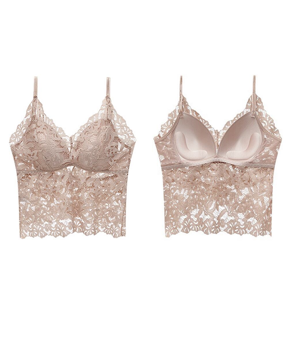透け感のある総レースデザインがフェミニンな印象のカップ付きキャミソール