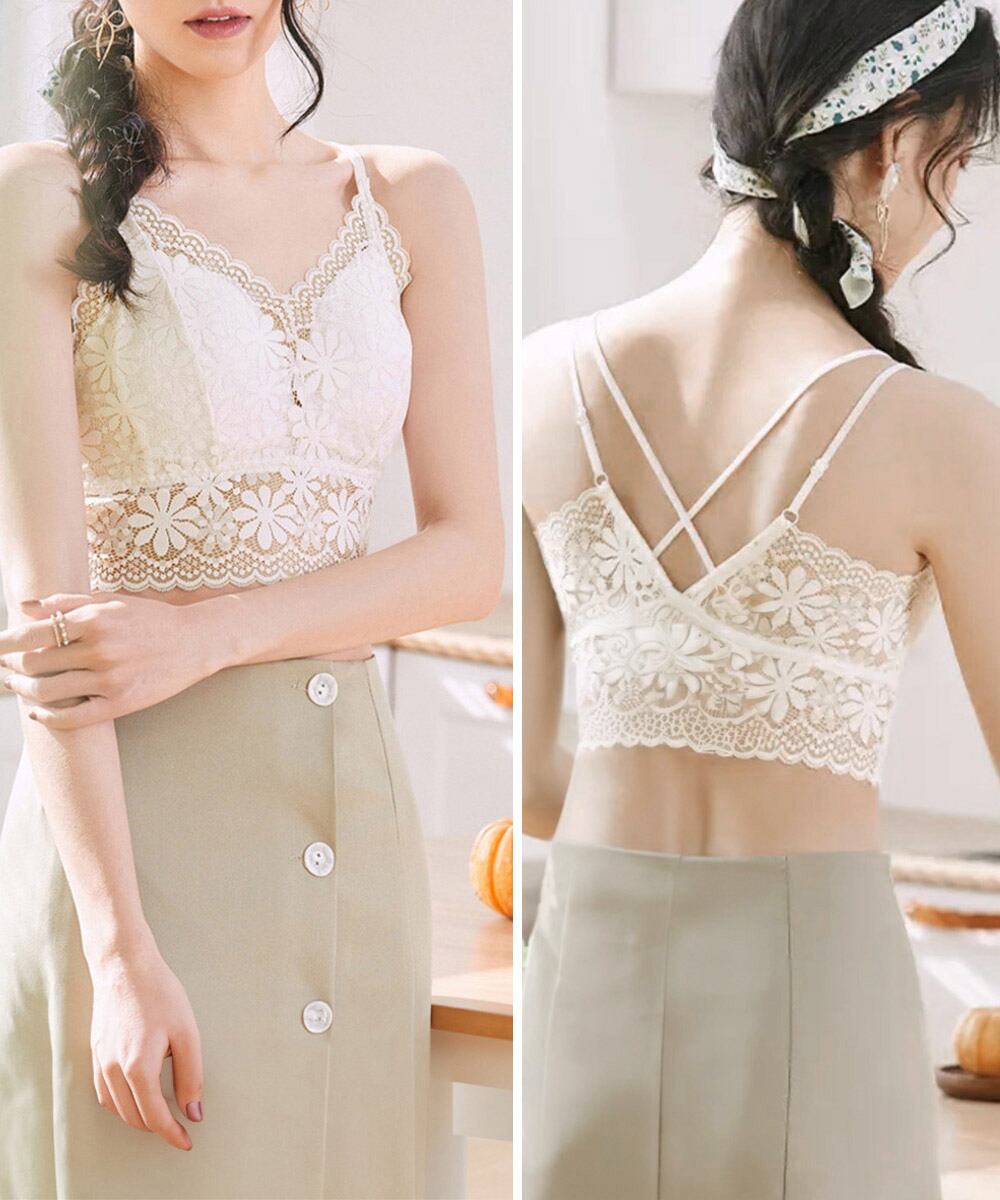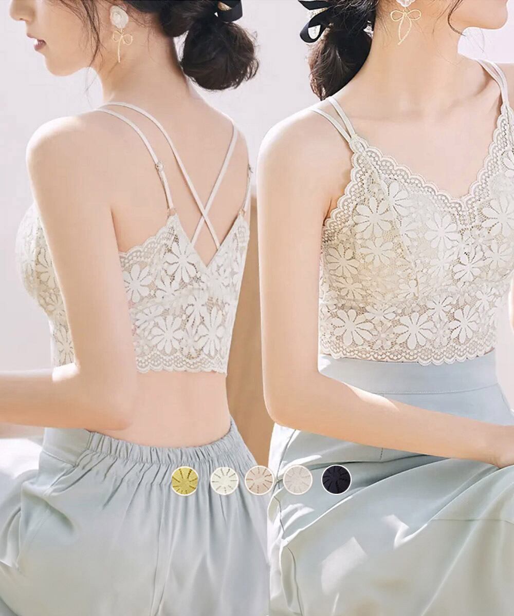 【日本倉庫からの発送】 総レースキャミソールカップ付きブラトップ #[86MXUANBN-001_14800]【送料込み】【250712】
