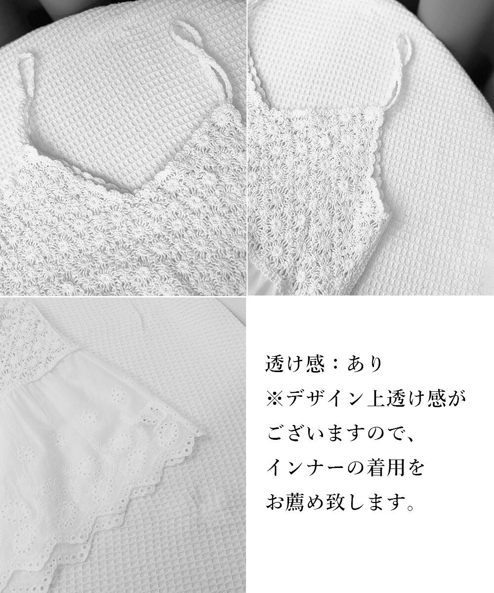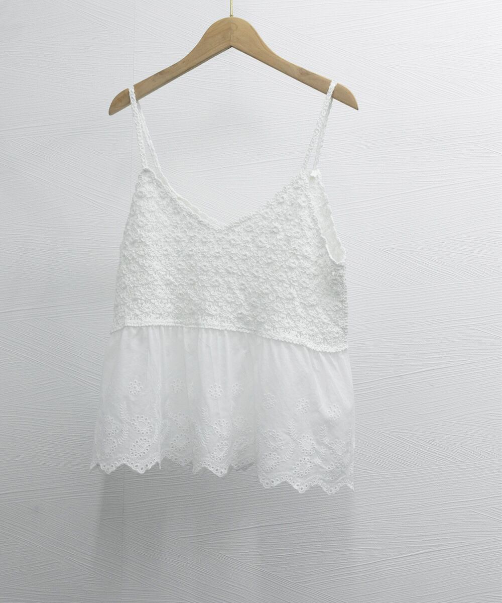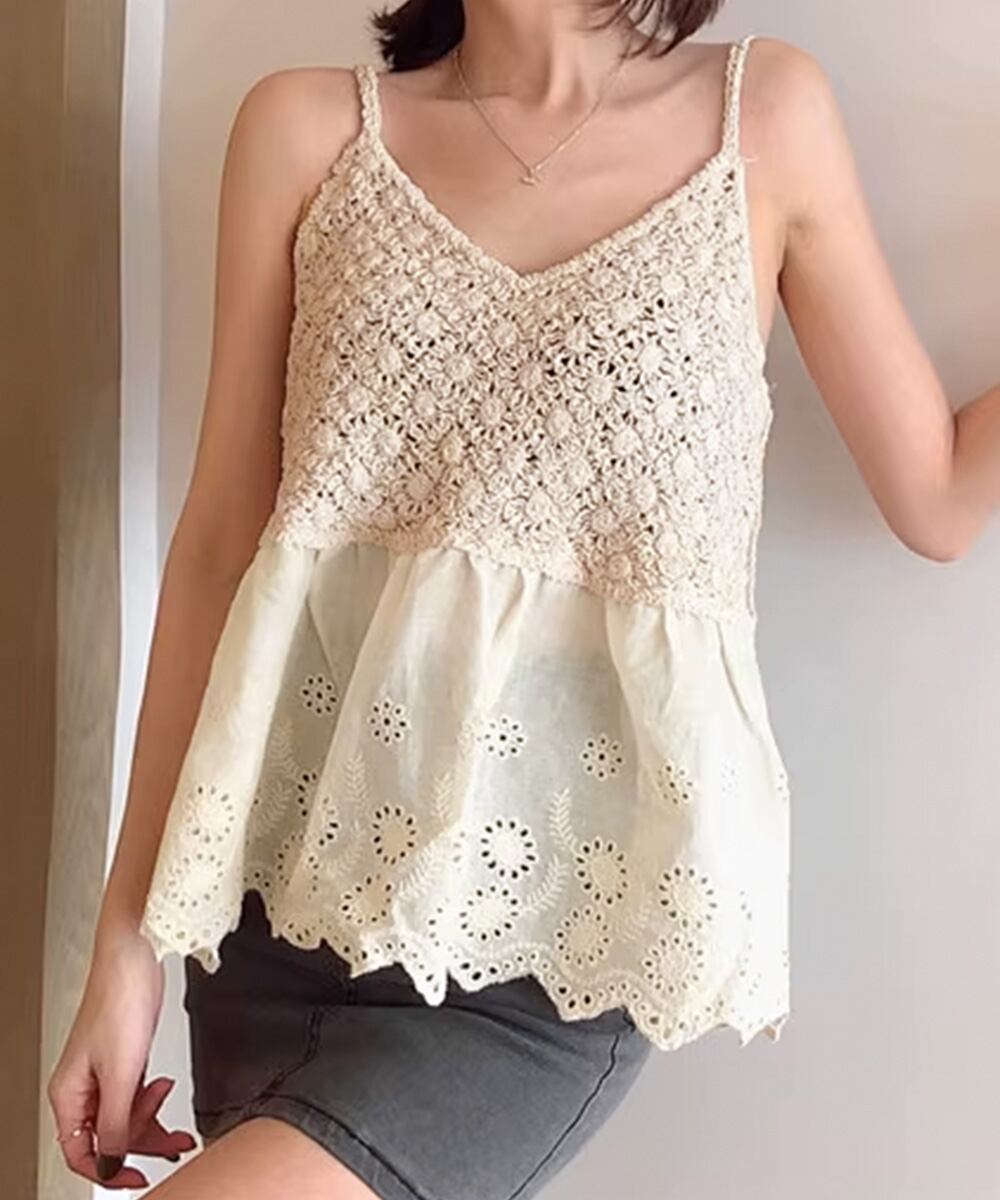 【日本倉庫からの発送】 透かし編みキャミソール Vネックトップス #[85YN-900562_13500]【送料込み】【250614】