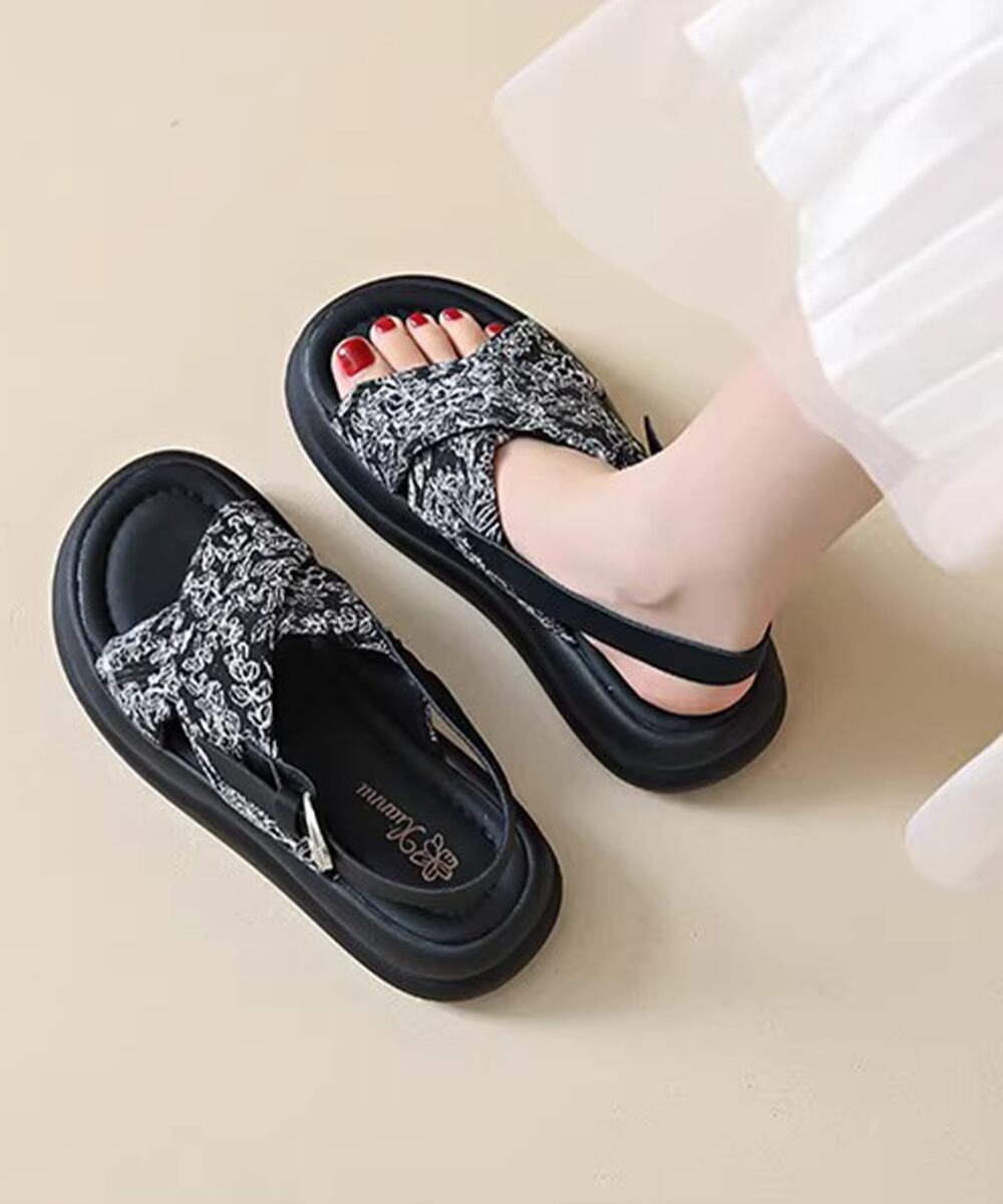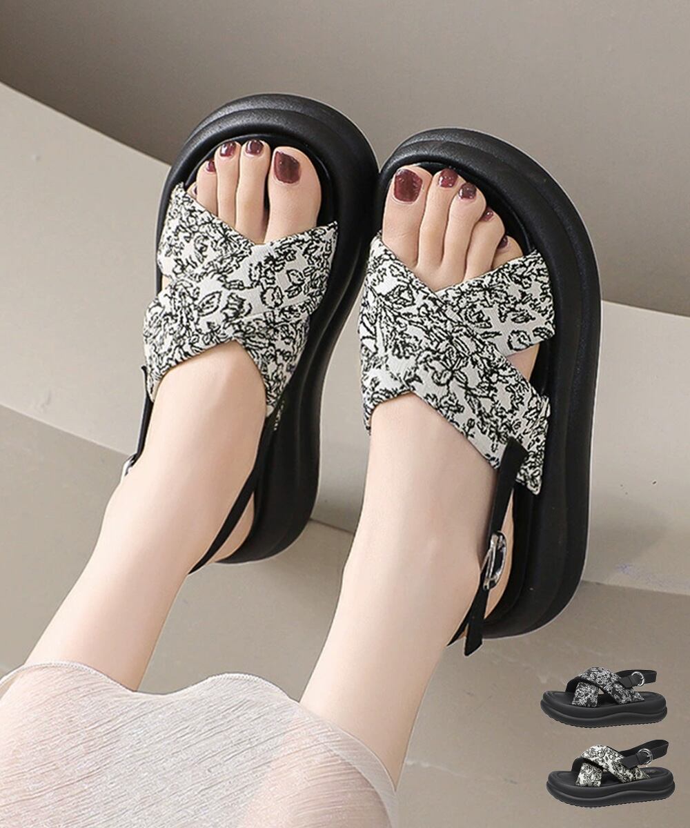 フラワープリント クロスサンダル レディース 歩きやすいコンフォートサンダル 疲れにくい おしゃれ 原宿系夏靴 シューズ