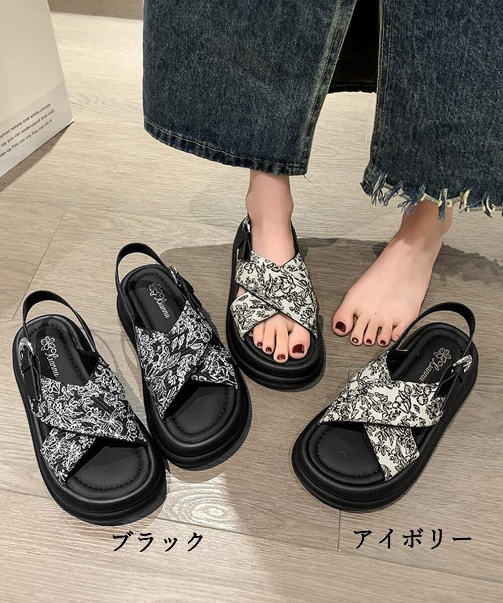 【日本倉庫からの発送】 厚底サンダル クロスベルトサンダル 美脚 #[84TONGT-006_26700]【送料込み】【250614】