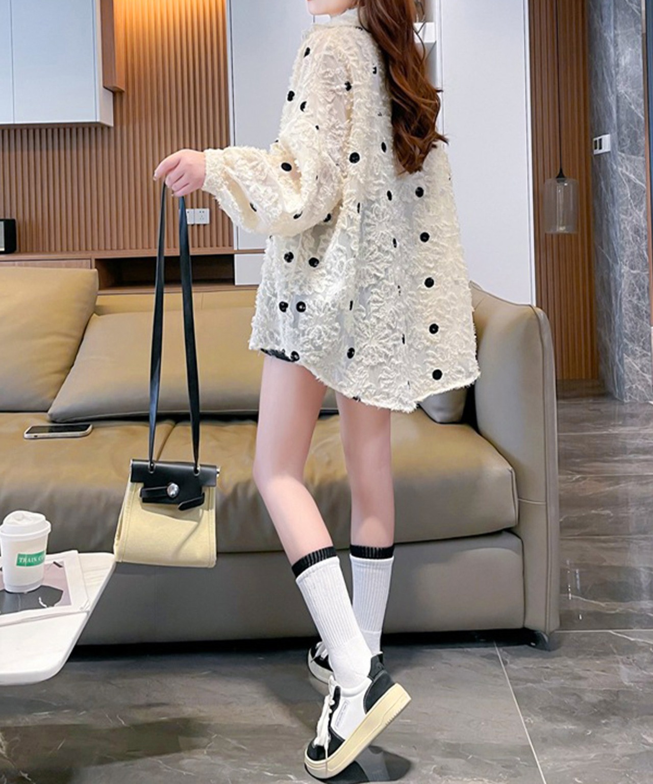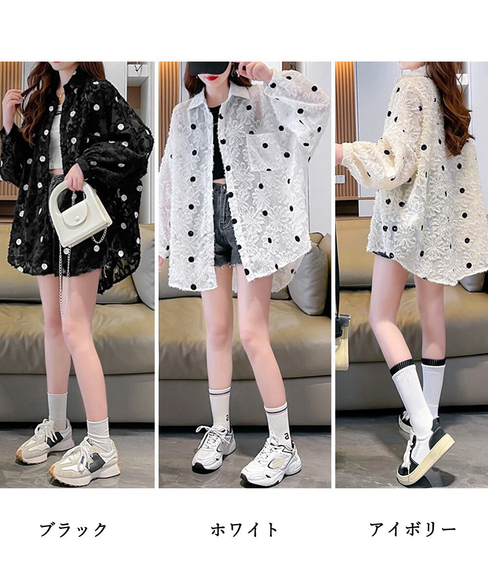 【日本倉庫からの発送】 ドット柄カーディガン シースルートップス #[80YIGL-004_23100]【送料込み】【250606】