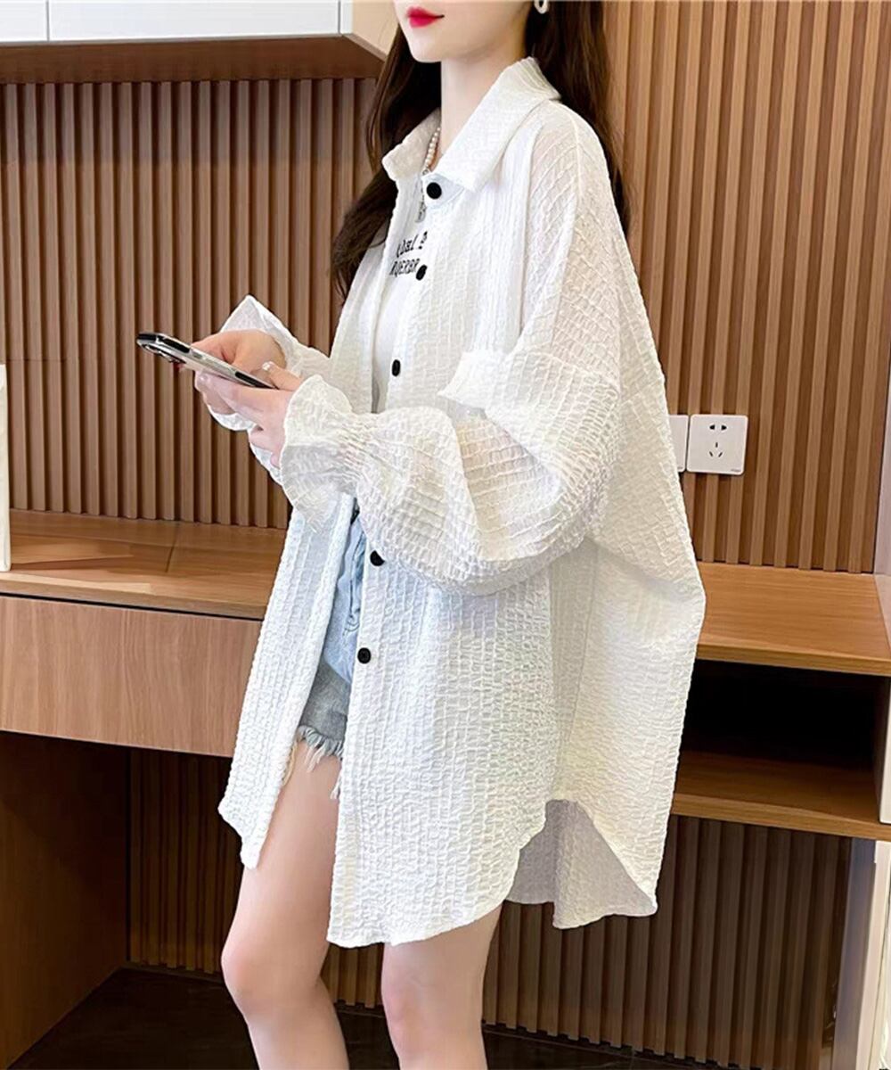 シャツブラウス レディース 冷房対策羽織り 紫外線対策 ゆったり長袖トップス 着やせ 韓国風軽アウター春夏秋 ポロネック