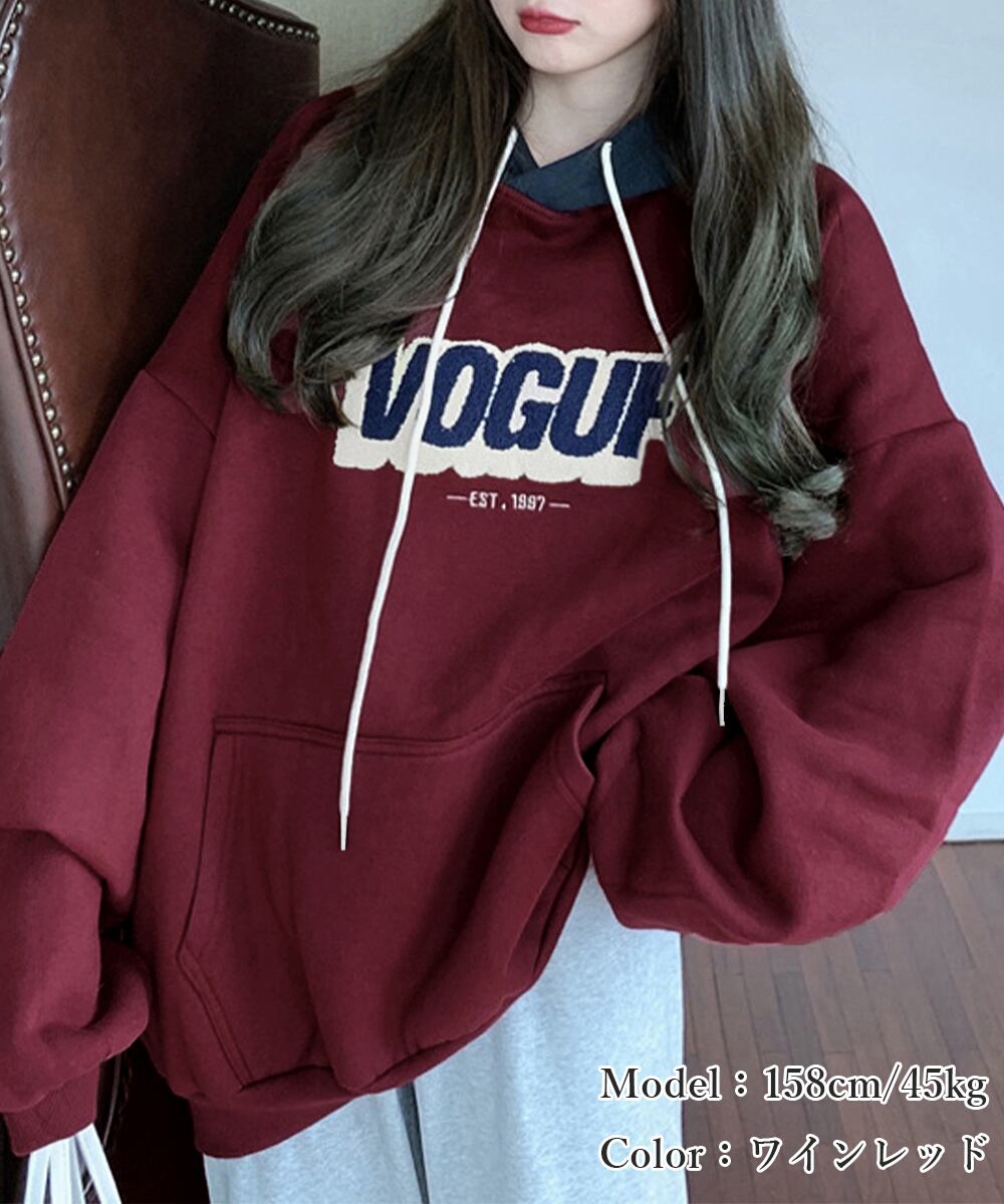 フード付きスウェット ビッグシルエット プルパーカー 韓国風トップス 英字ロゴロングトレーナー 体型カバー 暖かい秋冬服