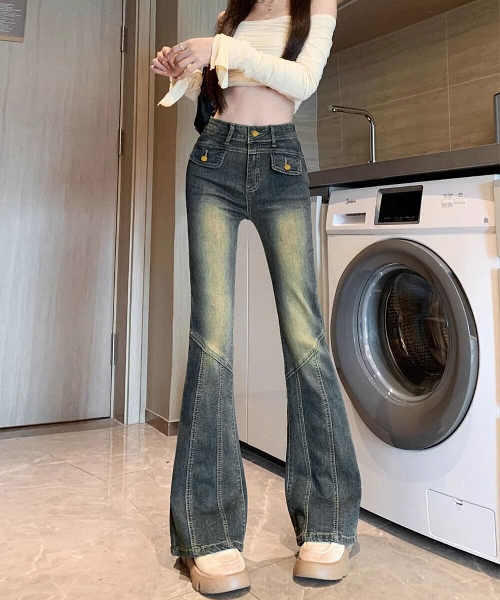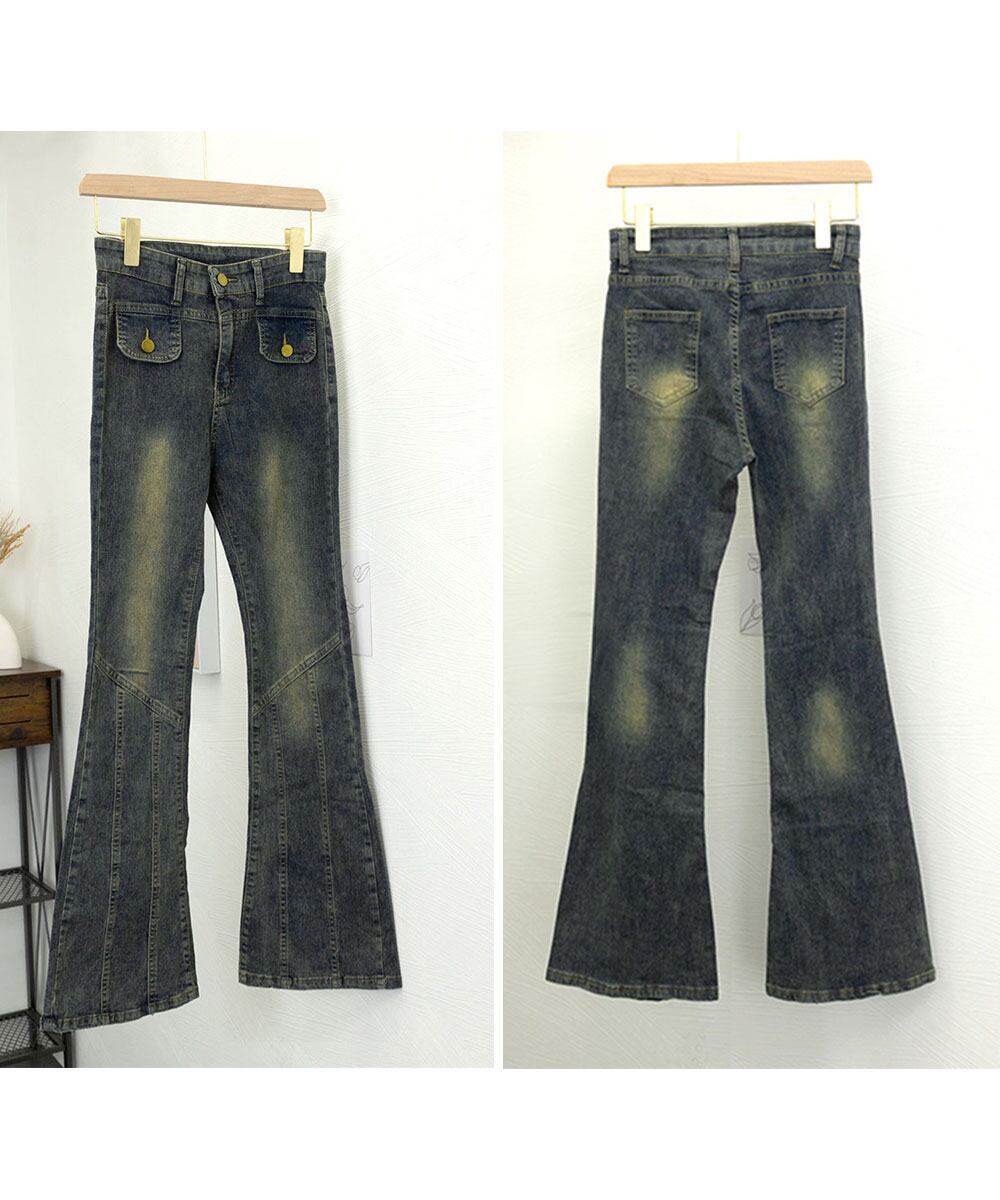 【日本倉庫からの発送】 レトロ セミフレアデニムパンツレディース #[21KUZI-017_29100]【送料込み】【251029】