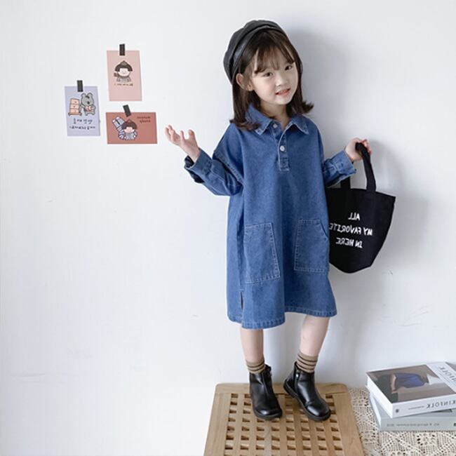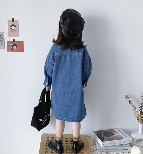 【海外からの取り寄せ】 2024新作 韓国子供服 キッズ デニムシャツワンピーストップス かわいい 長袖 オーバーサイズ #[kids784_15800]【送料込み】【250706】