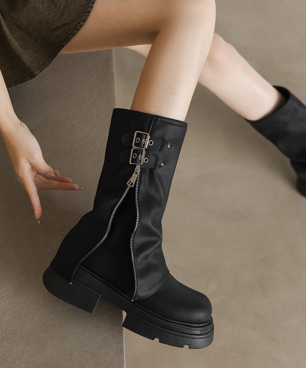 レディース バイカーブーツ ワークブーツ ショートブーツ オルチャン ファスナー カジュアル 歩きやすい オシャレ