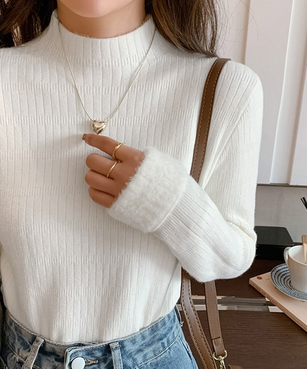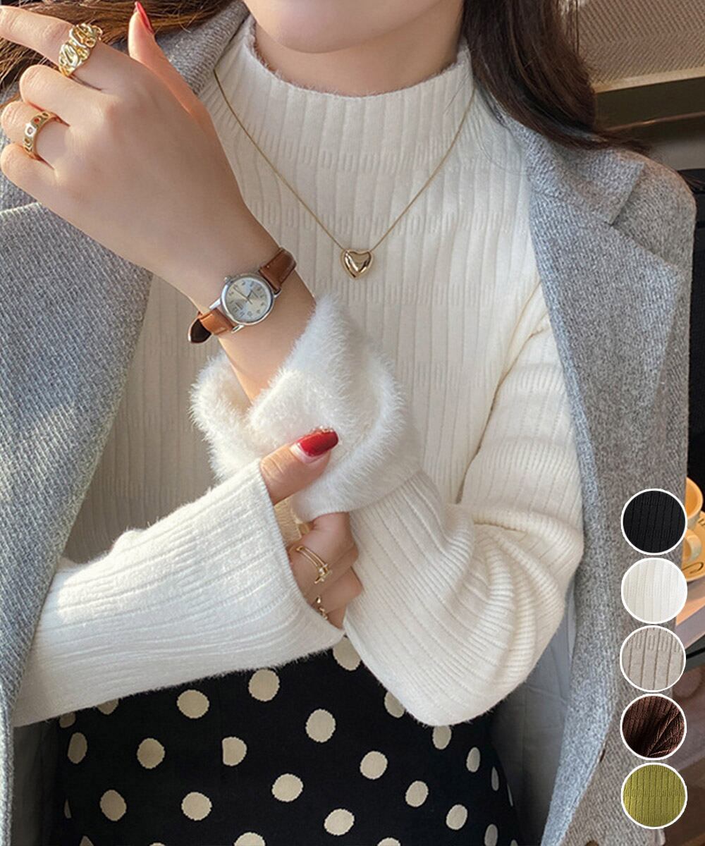 【日本倉庫からの発送】 裏起毛 プチハイネックニットトップス厚手 #[86KANING-040_24600]【送料込み】【260125】
