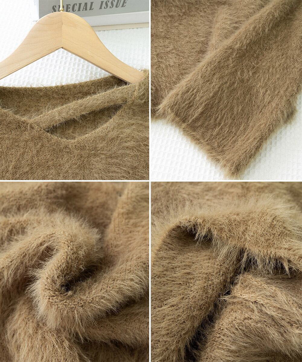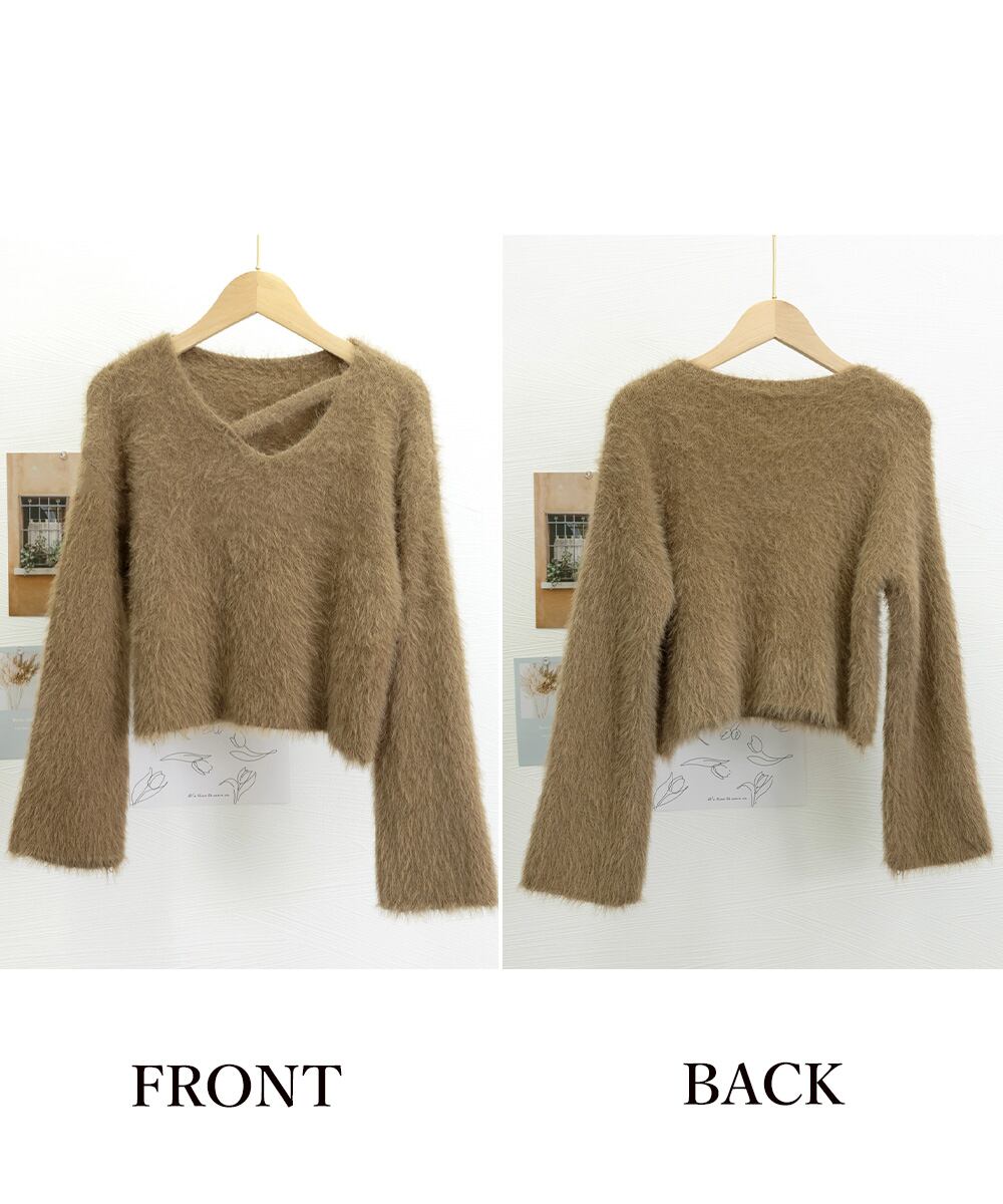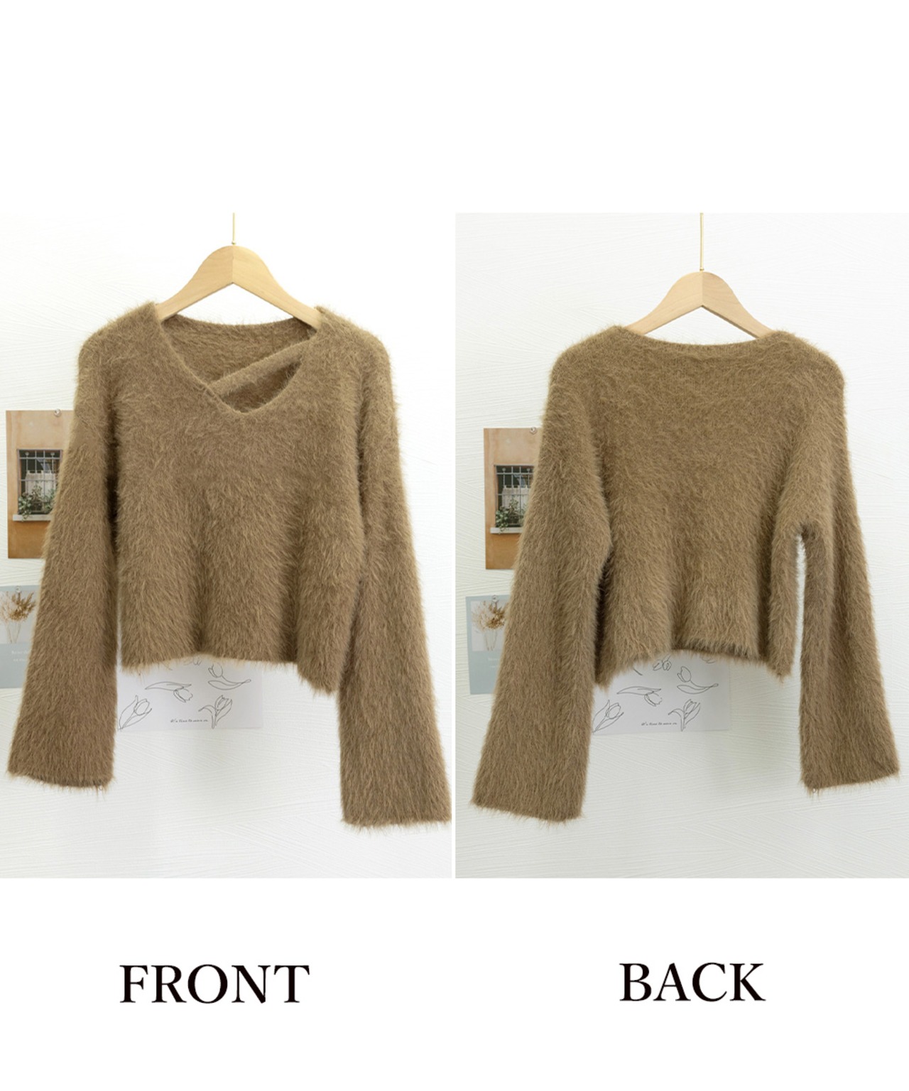 【日本倉庫からの発送】 クロップド丈シャギーニット Vネック長袖 #[84MEIRJ-015_23800]【送料込み】【251110】