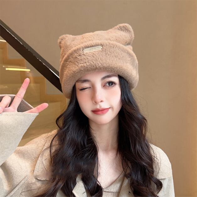 ワンポイントの大きな猫耳がキュート ファーハット