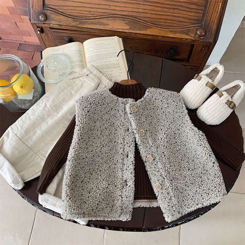 【海外からの取り寄せ】2024秋冬新作 子供服 レトロ ボアベスト キッズ チョッキ カジュアル トップス 男女兼用 ジレ #[ckd1094180_17400]【送料込み】【250511】