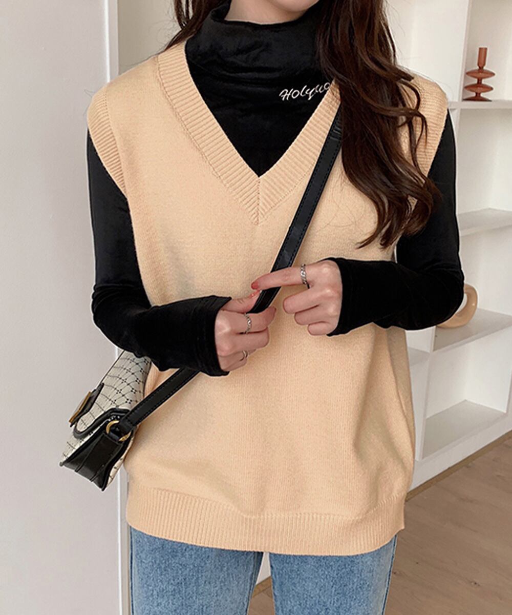 人気着やせニット 無地シンプルベスト 韓国ファッション服