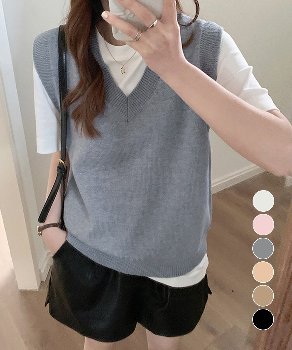 【日本倉庫からの発送】 ニットベスト Vネック 重ね着 春秋冬 #[99CXFZ-001_20100]【送料込み】【251210】