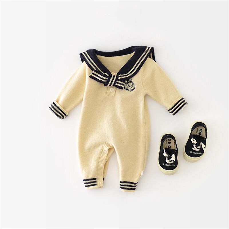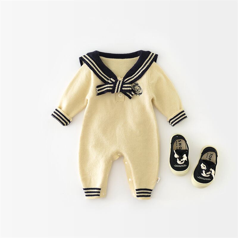 【海外からの取り寄せ】2024秋新作 ベビー服 ニット オールインワン セーラーカラー 可愛い 新生児 おしゃれ 子供服 #[ckd1094194_23700]【送料込み】【250511】