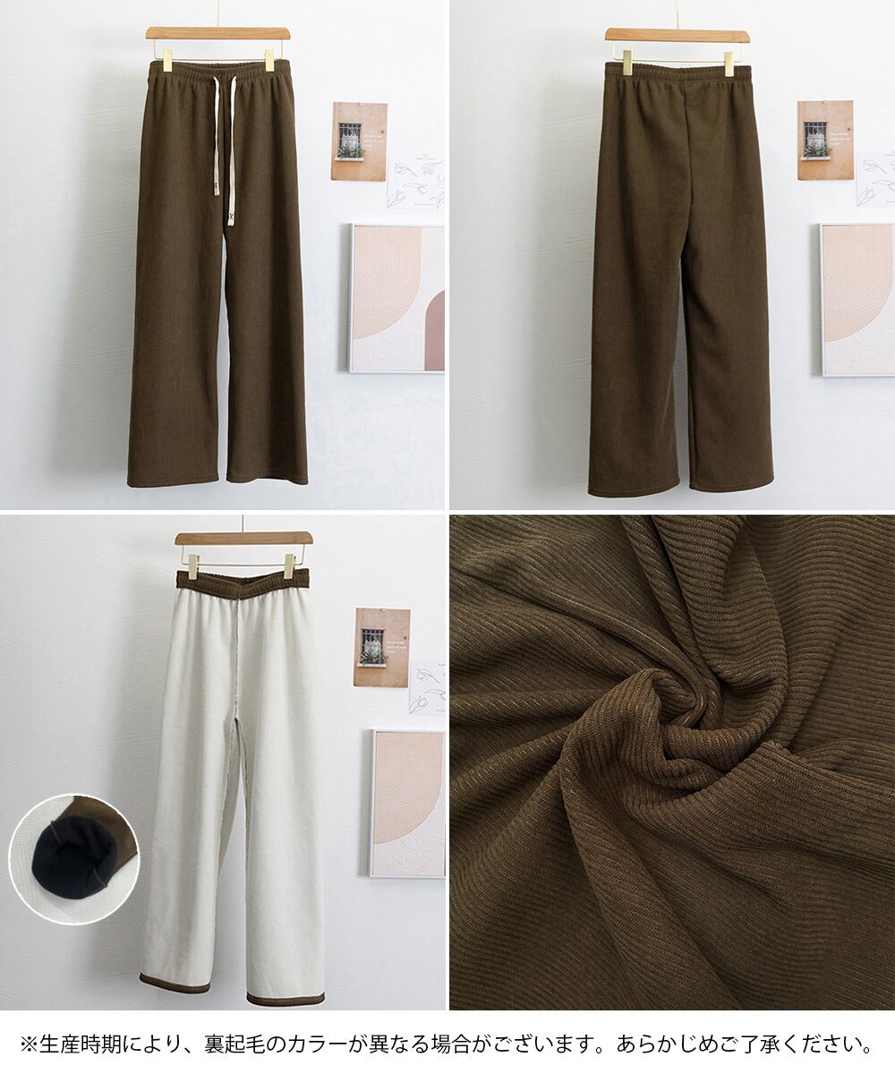 裏起毛の暖かいコーデュロイのワイドパンツ。