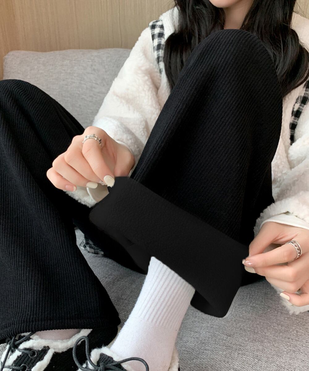 ストレートパンツ冬 着やせ美脚パンツ黒 裏ファーパンツ厚手