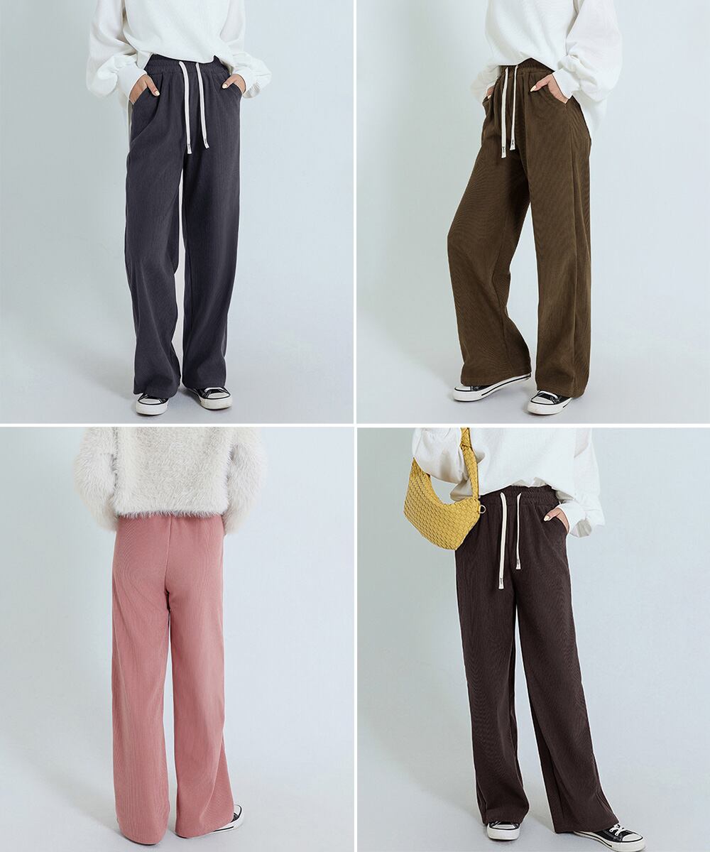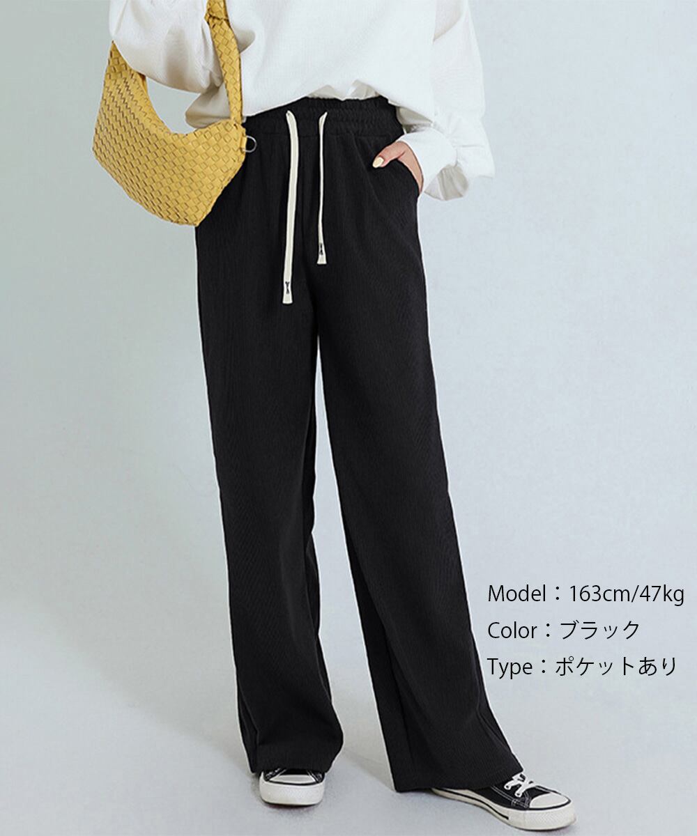 ワイドパンツ レディース ウエストゴム イージーパンツ 大人カジュアル 暖かい ロングパンツ 脚長見せ 韓国風ボトムス