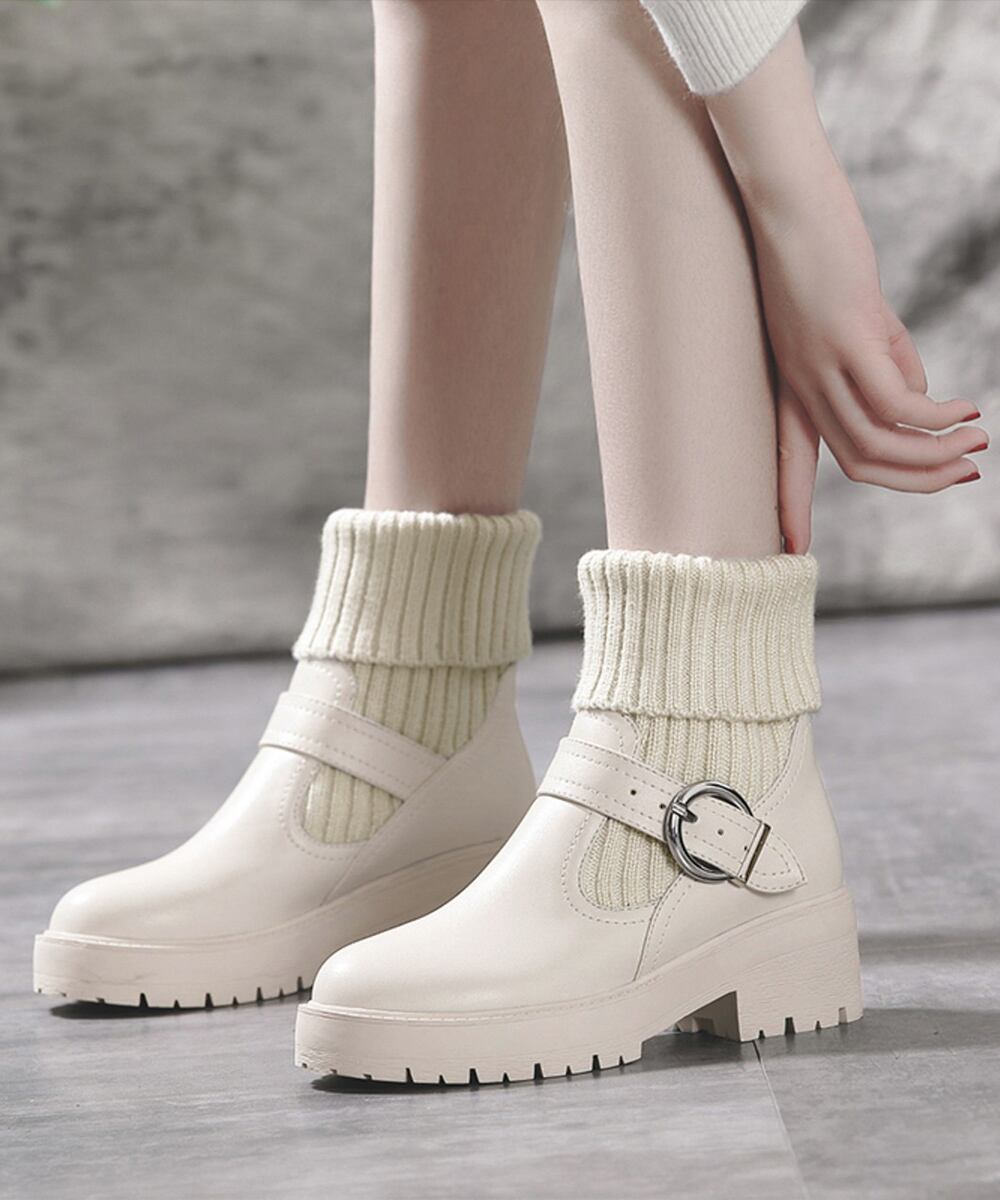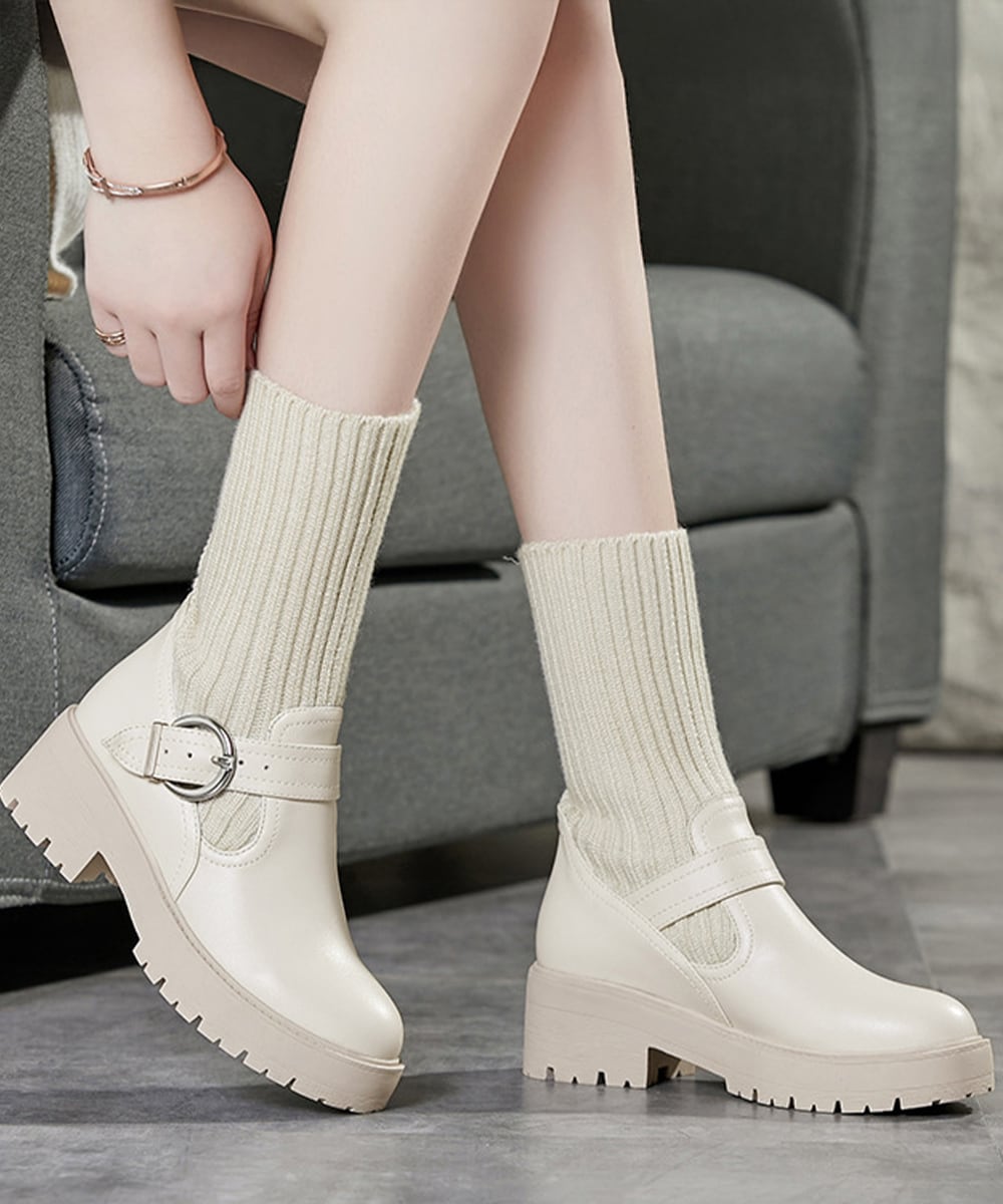伸縮性のあるニットソックス素材を使用しているため、足首にぴったりフィットし、華奢で暖かい印象をプラス