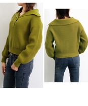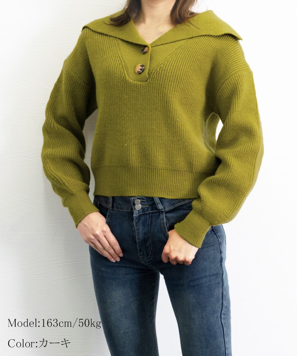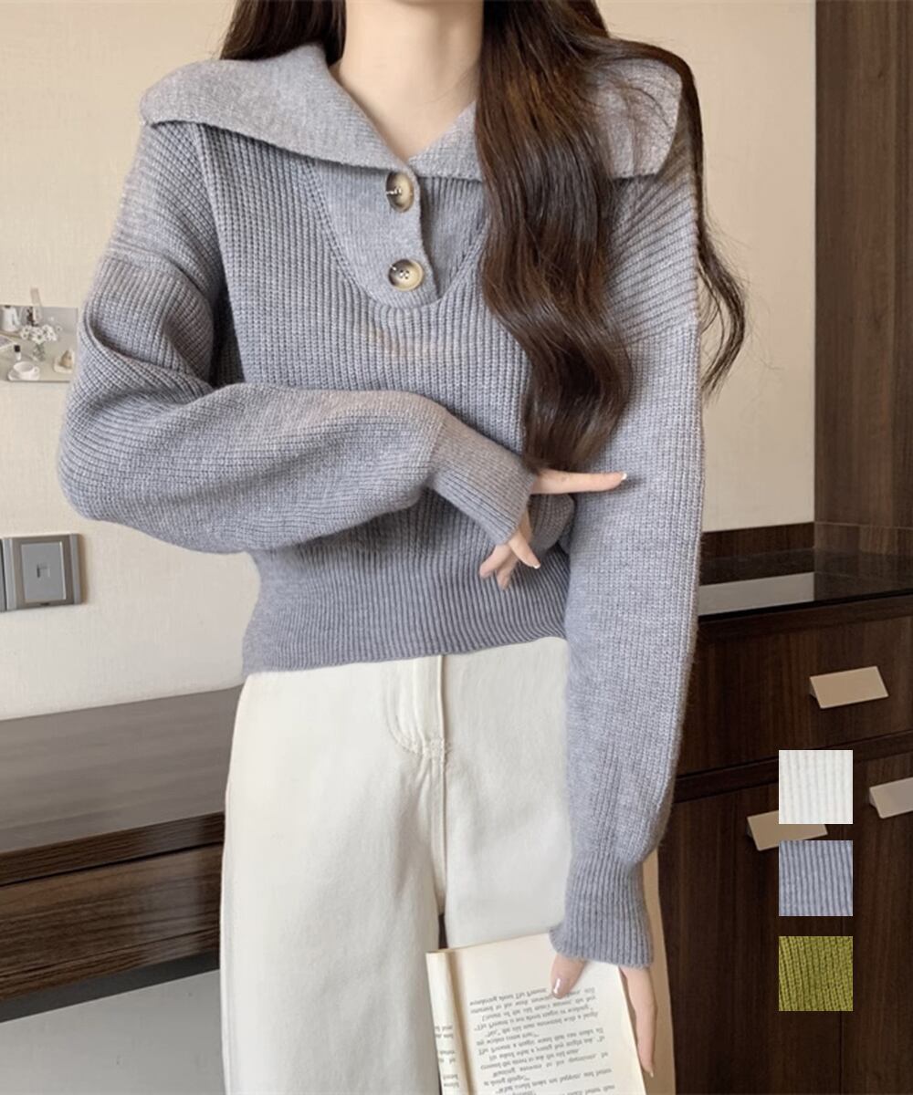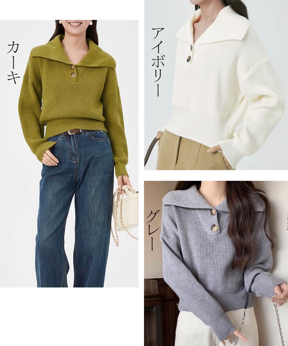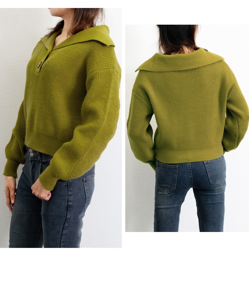 ポロ襟ニットセーター 大人可愛い リブ編み ニットソー 中厚手 襟付きニット ニットウェア 通学通勤 セーラー襟ニット