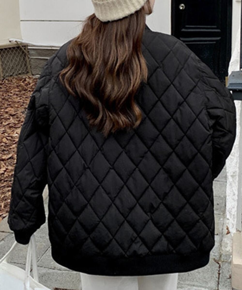 レディース ダイヤモンドキルティング ジャケット 韓国風冬アウター アメカジ あったか フェイクダウンコート カジュアル