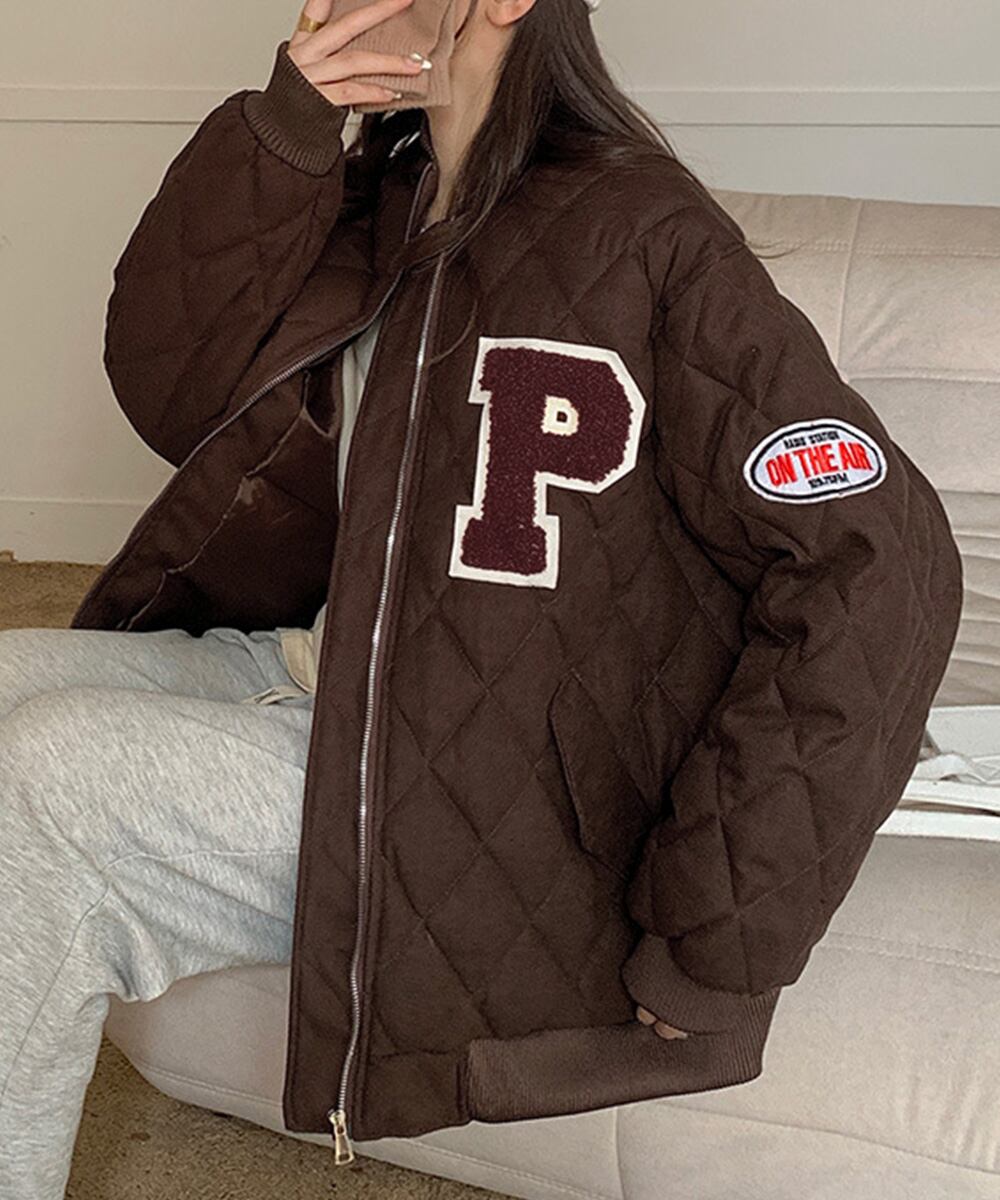 前面には大きな「P」の文字が刺繍された赤いパッチが付いており、目を引くデザイン