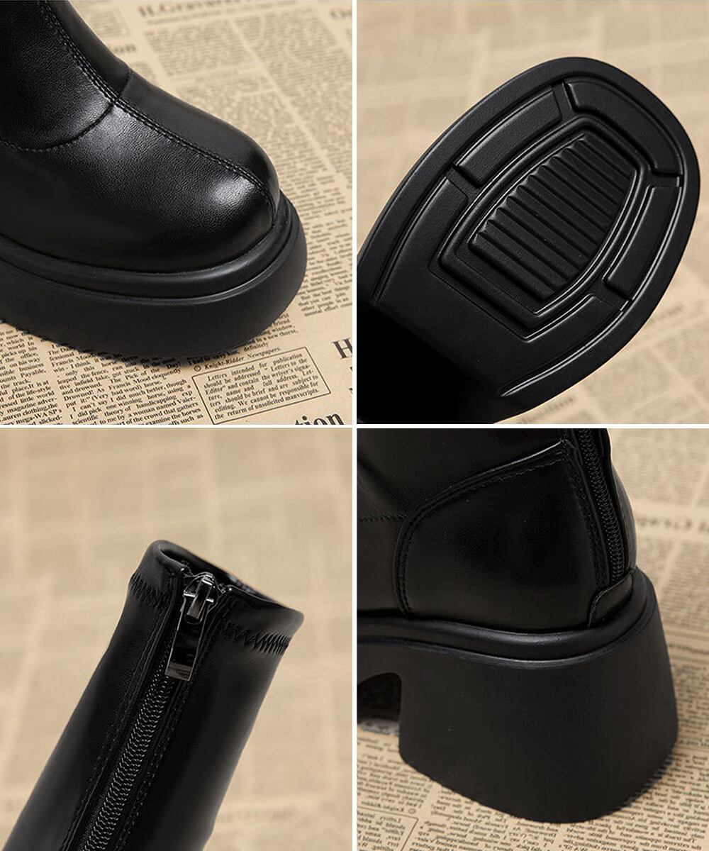 厚底ワークブーツ レディース ラウンドトゥ コンフォートブーツ 太ヒール 疲れにくい 靴 韓国風履きやすいくつ 通勤通学
