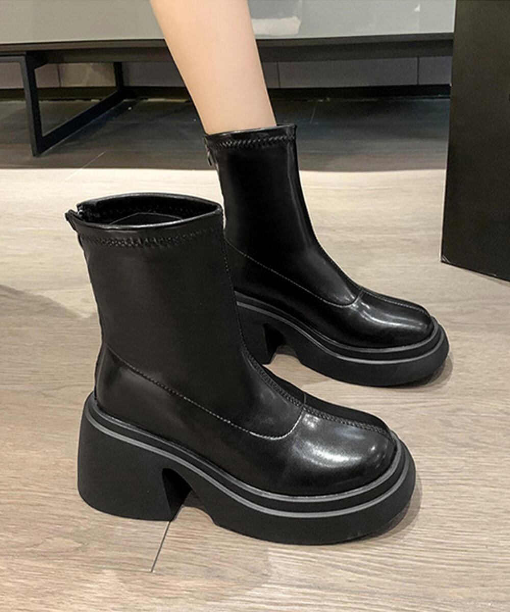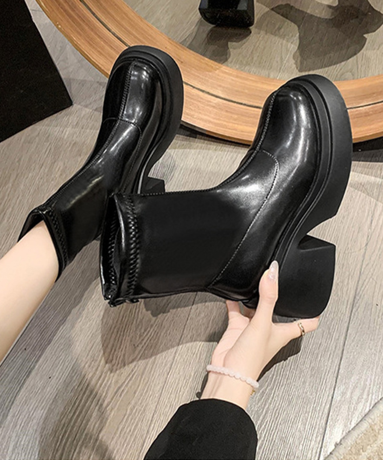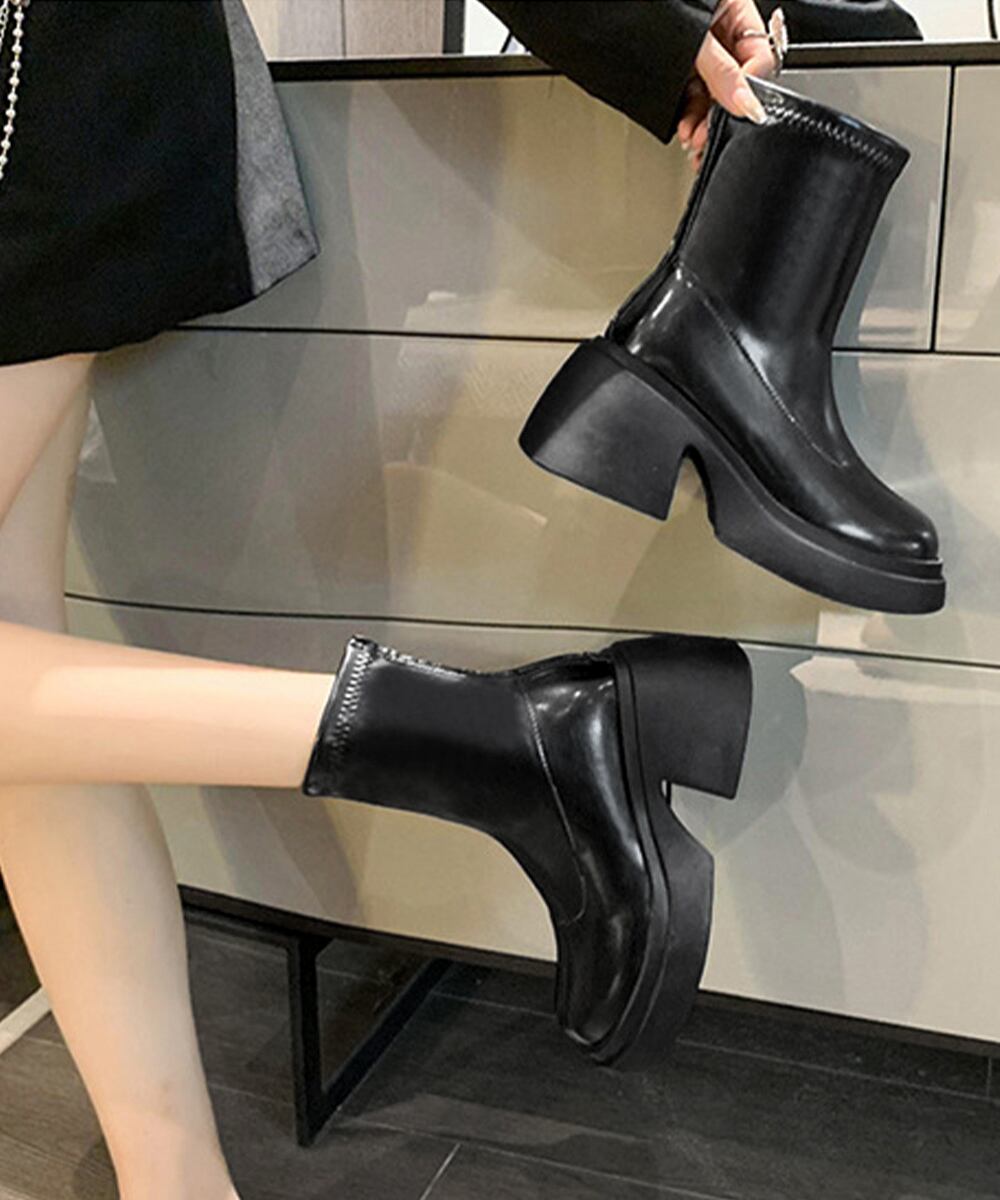 【日本倉庫からの発送】 PUレザーショートブーツ バックジッパー #[83RAJL-014_28300]【送料込み】【251029】