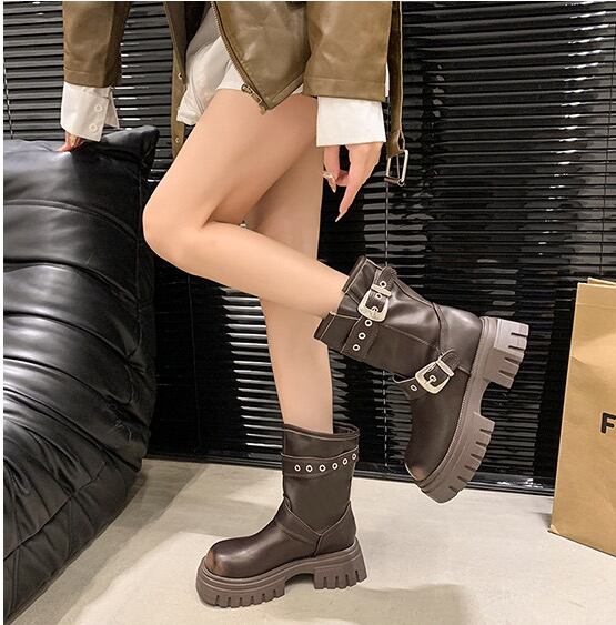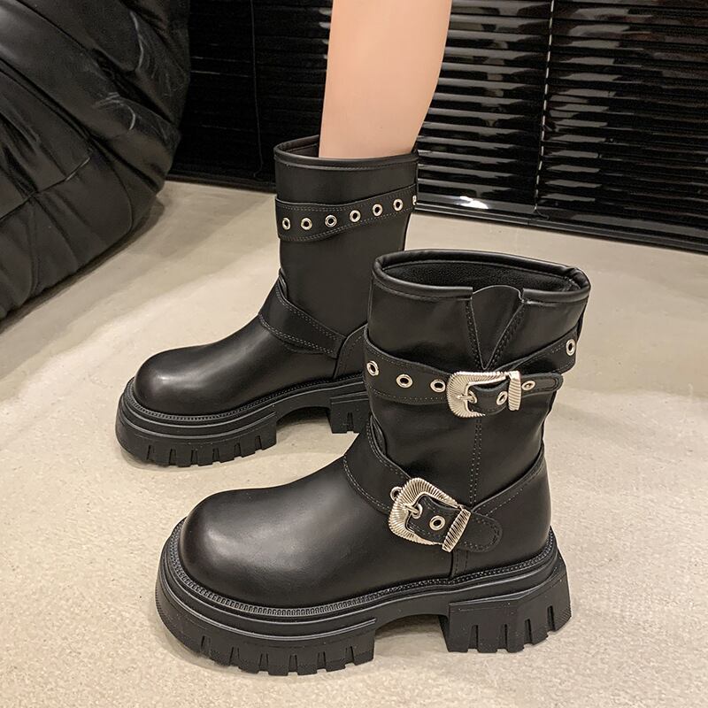【海外からの取り寄せ】 レディース 靴 ミドルブーツ ダブルベルト 裏起毛 黒 エンジニアブーツ #[boots333_25800]【送料込み】【251012】