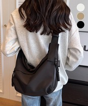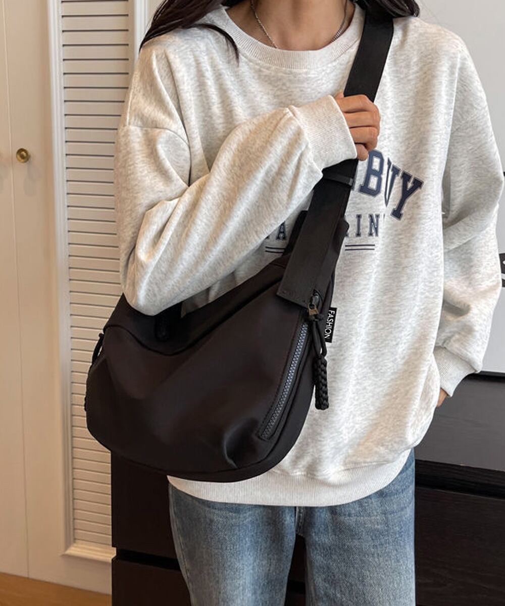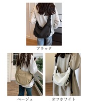 シンプルなデザイン、ベーシックカラーのナイロンショルダーバッグ。