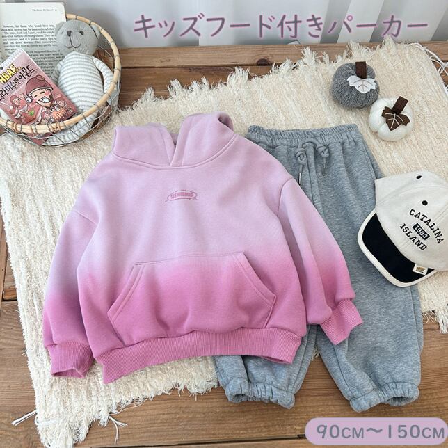 グラデーション色合いで可愛い フード付きパーカー