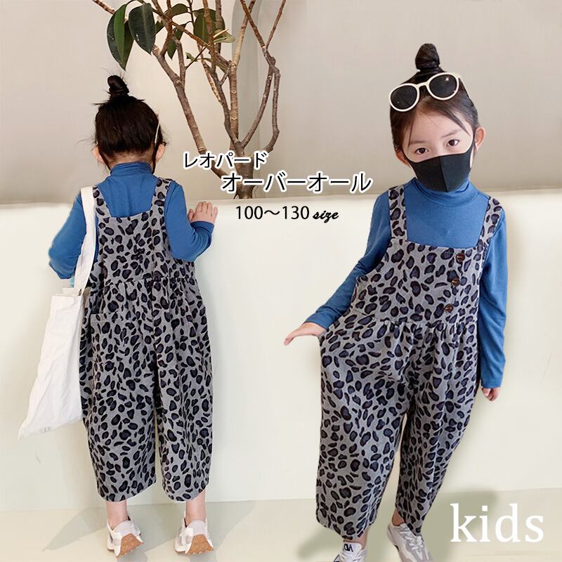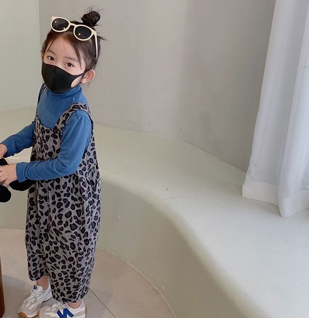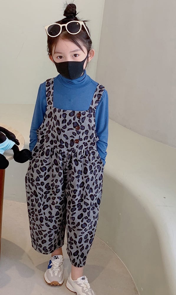 【海外からの取り寄せ】2021秋冬新作 子供服 キッズ オーバーオール レオパード柄 ヒョウ柄 パンツ サロペット 通学 #[kids347_8800]【送料込み】【250328】