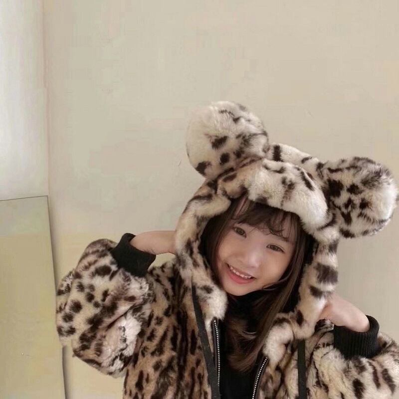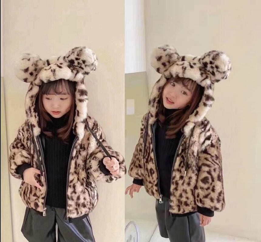【海外からの取り寄せ】2020秋冬新作 韓国風 子供服 女の子 キッズ フード フリース パーカー レオパード ふわふわ もこもこ #[kids188_20800]【送料込み】【250923】