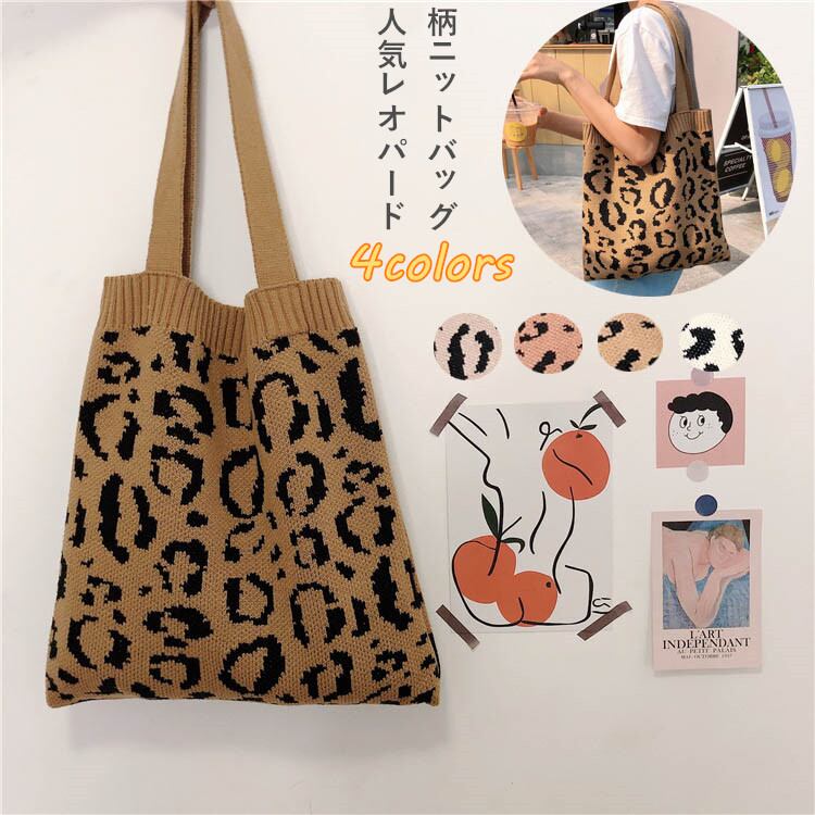 【海外からの取り寄せ】トレンドなレオパード柄ニットバッグかわいい 秋冬 トートバッグニット豹柄韓国ヒョウ #[bag152_8900]【送料込み】【250704】