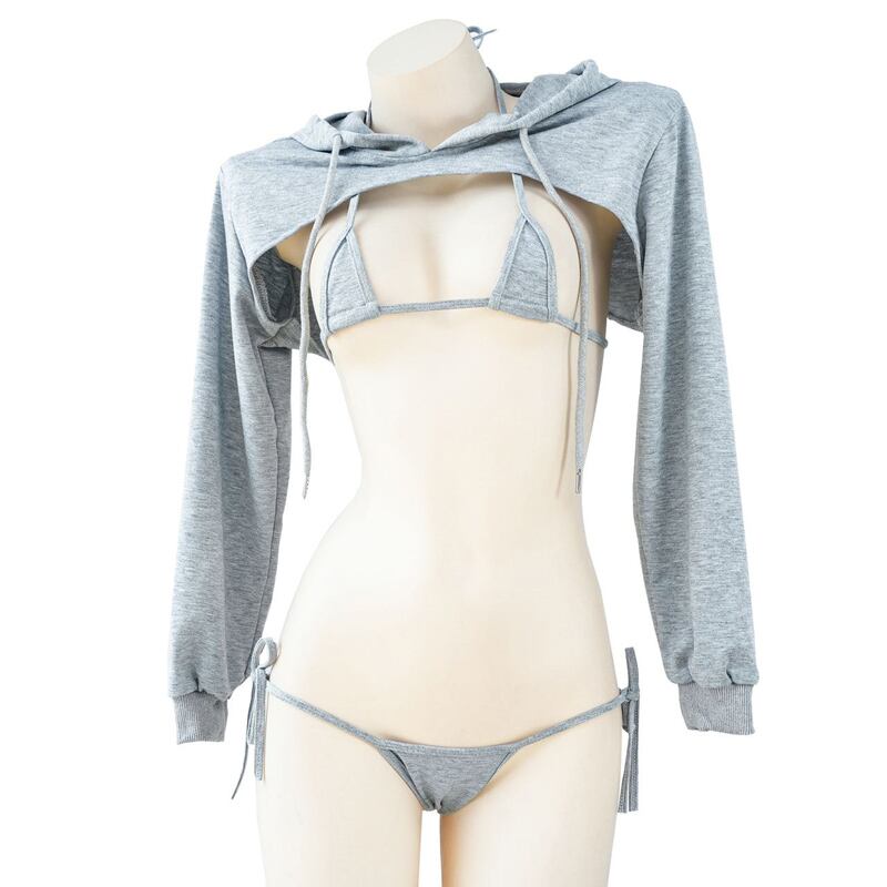 【即日出荷】グレー色 フード付きショートトップス ブラ&ショーツセットコスプレ衣装【 #[4280_17000]】【送料込み】【250913】
