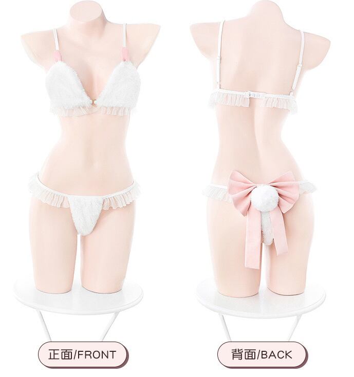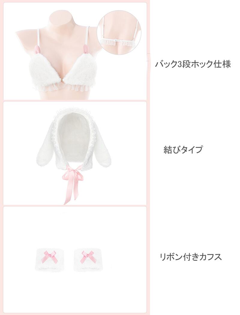 セット内容:たれ耳付きフード、ブラジャー、パンツ、カフス