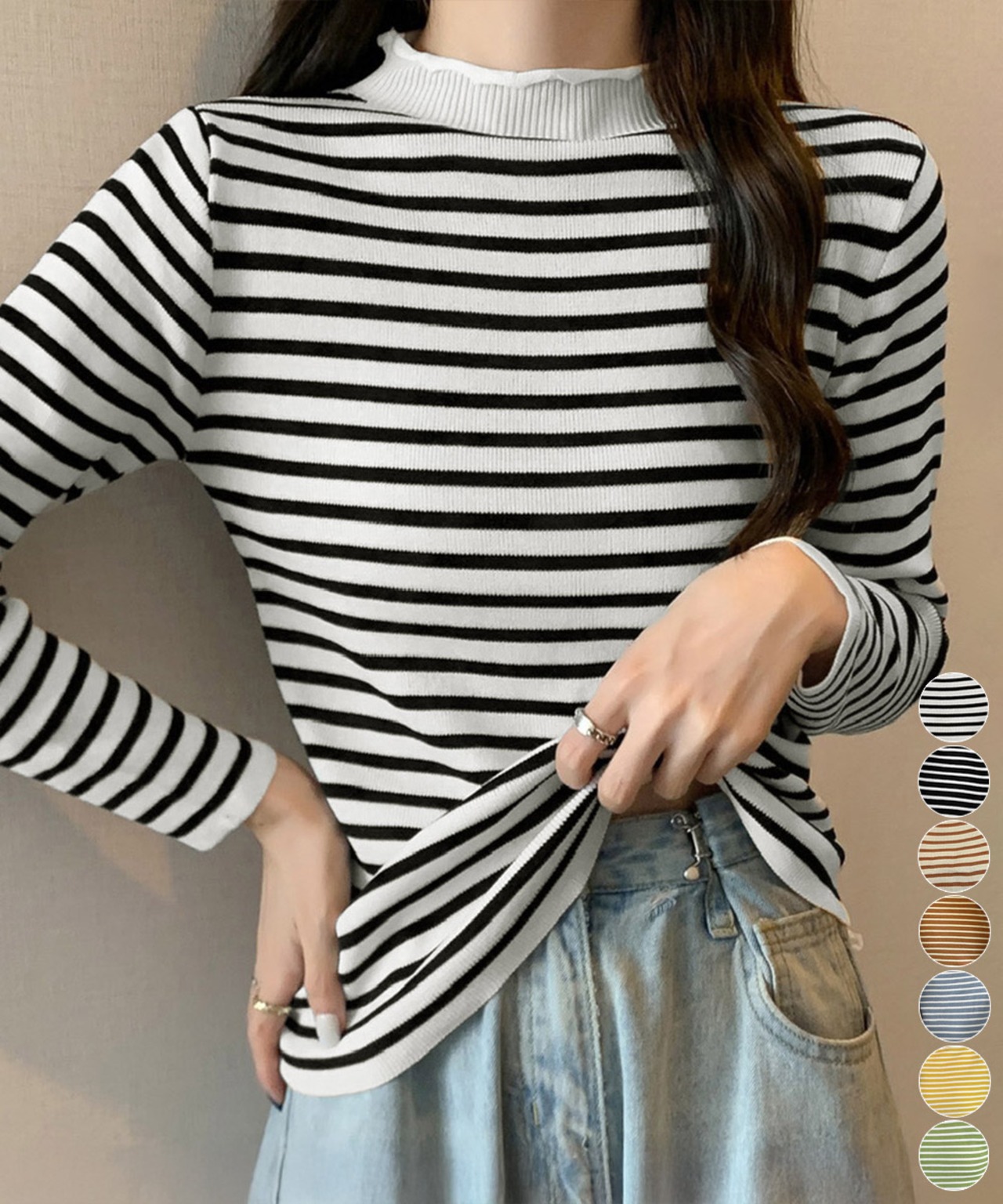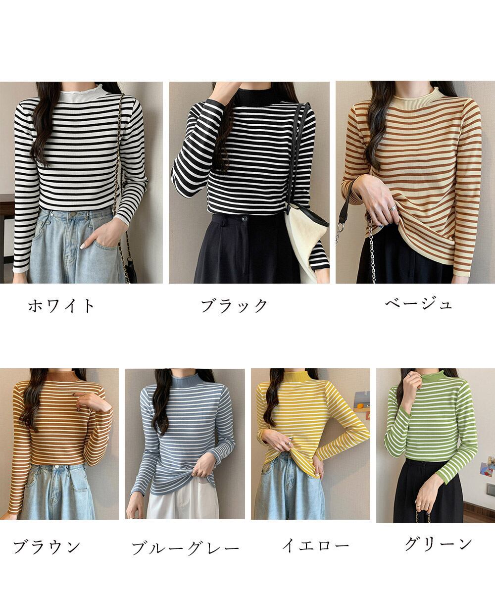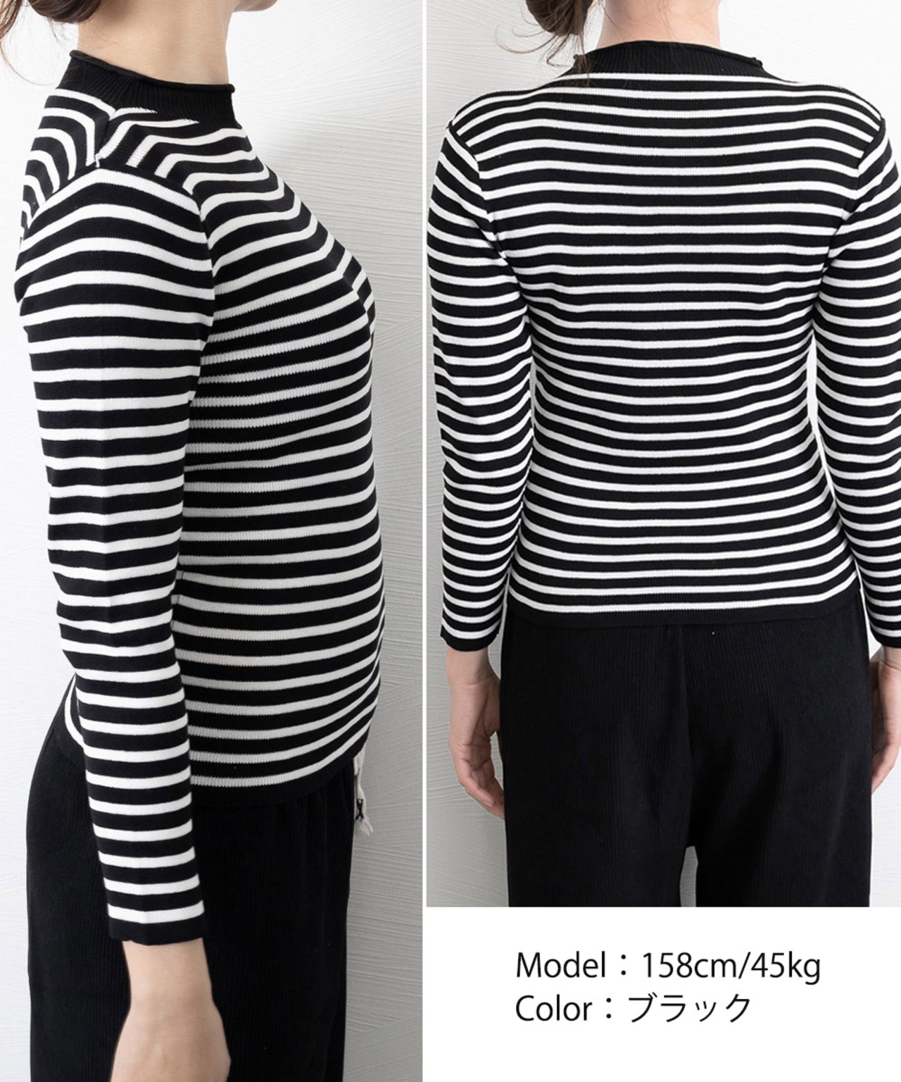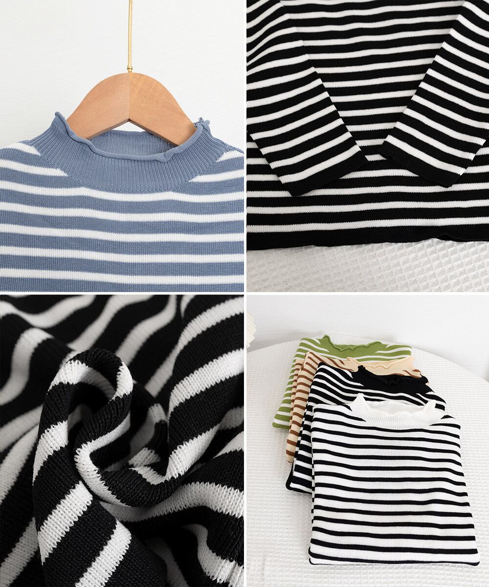 【日本倉庫からの発送】 ボーダー柄ニットロールネックプルオーバー #[84WANJIA-009_12600]【送料込み】【251017】
